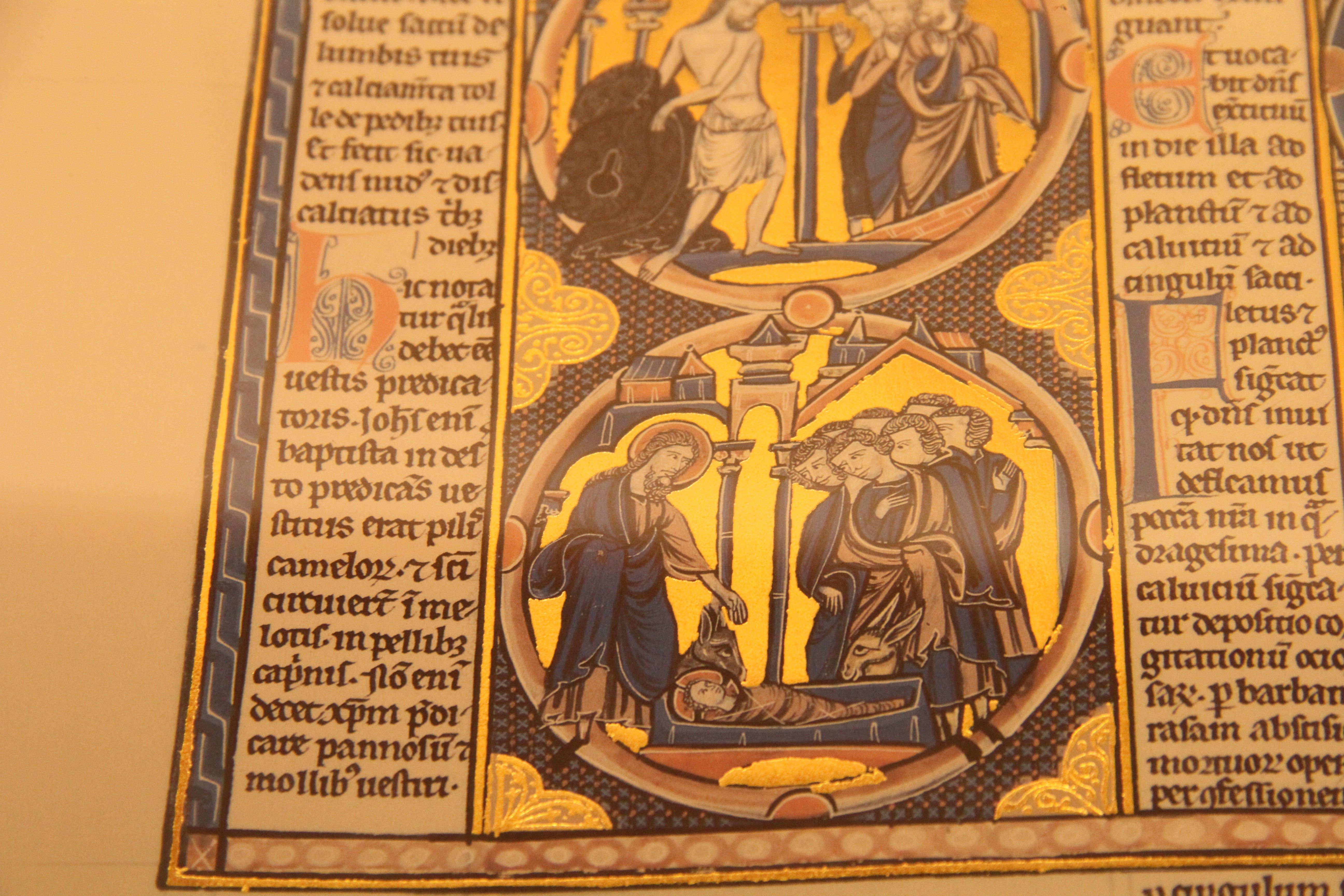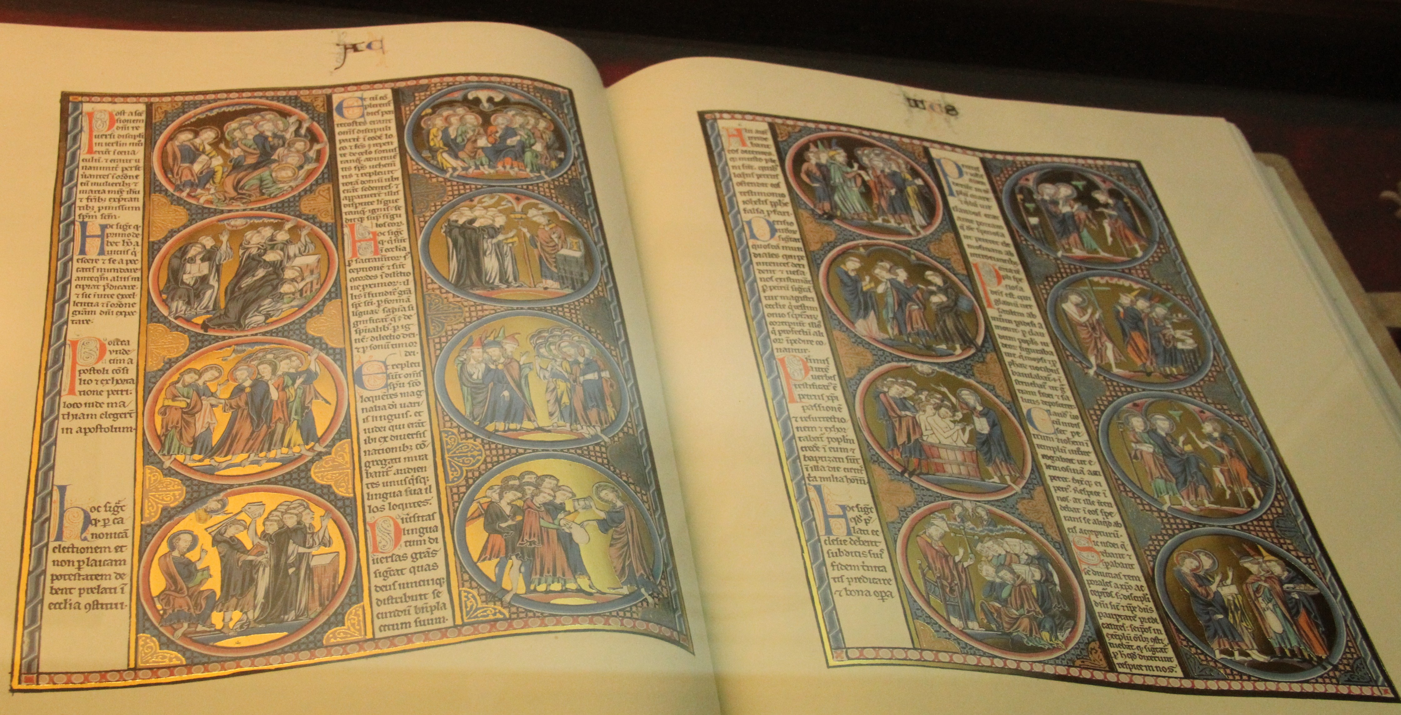 Mes photos ne sont pas de bonne qualité parce que prises derrière une vitrine avec reflets et couleurs dénaturées. Malgré cela, vous pouvez imaginer le travail des moines copistes et l’épaisseur de l’ouvrage en prenant vous-même une bible et, c’est le cas de le dire, en imaginant. C’était le moment culturel.