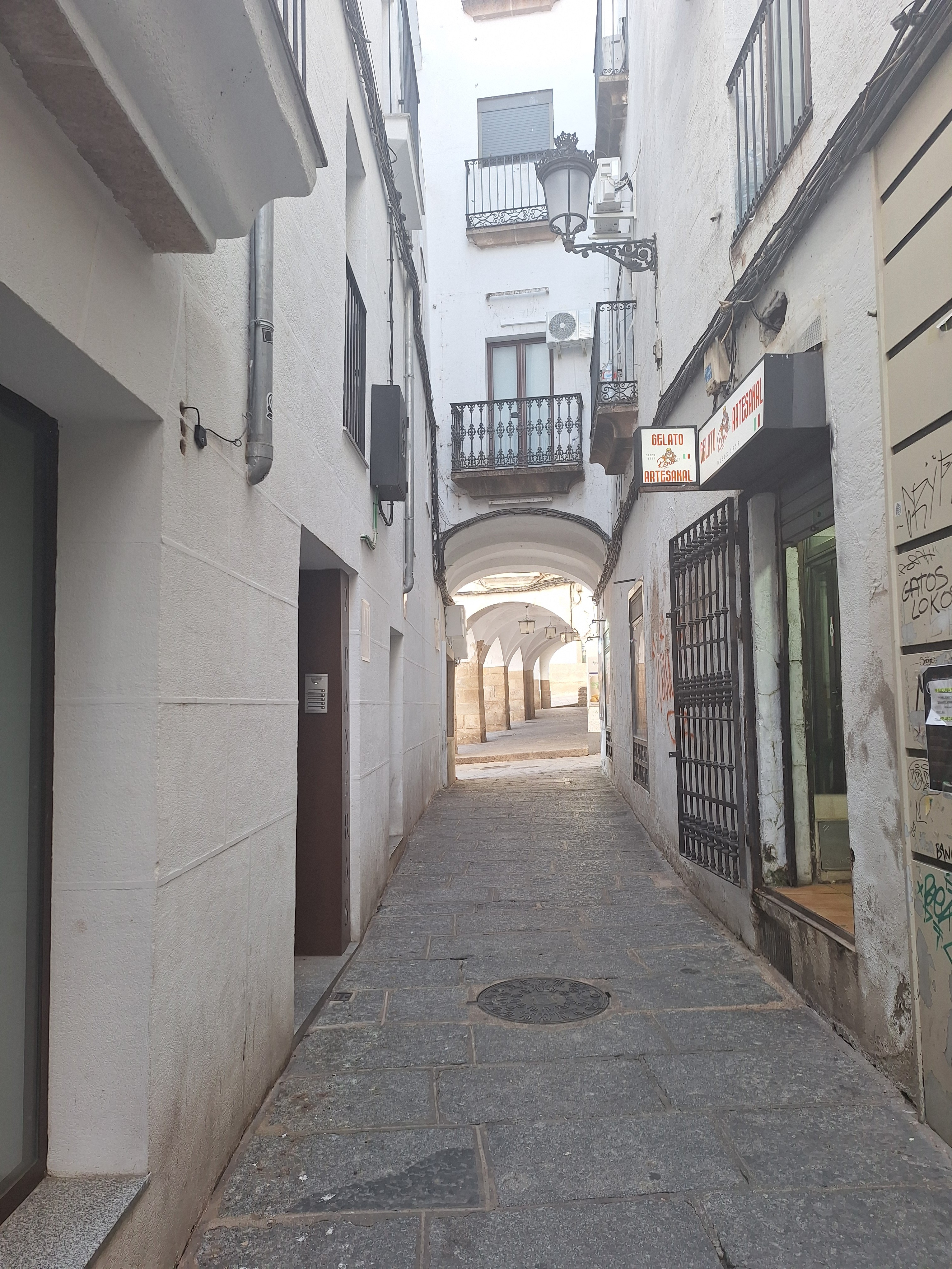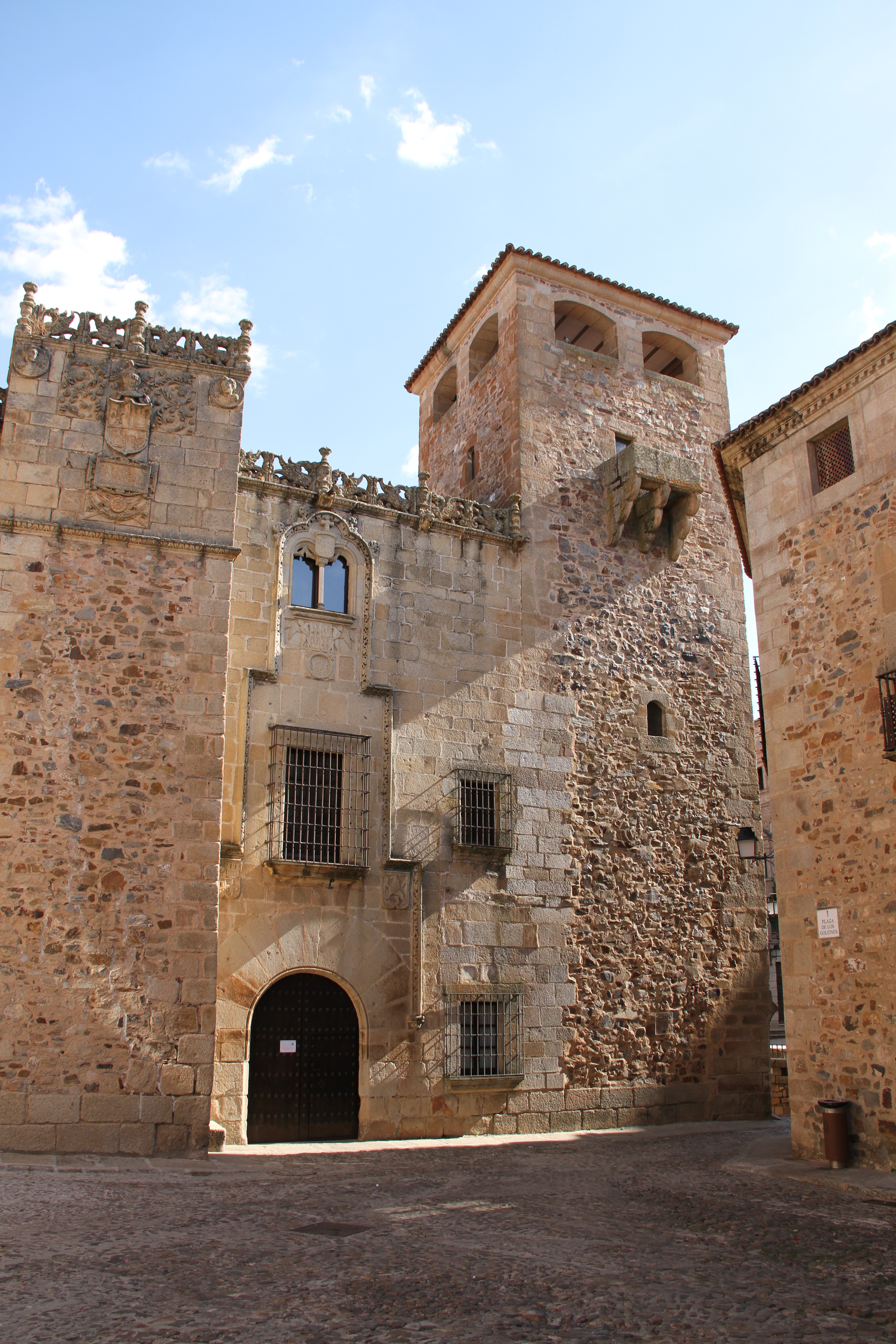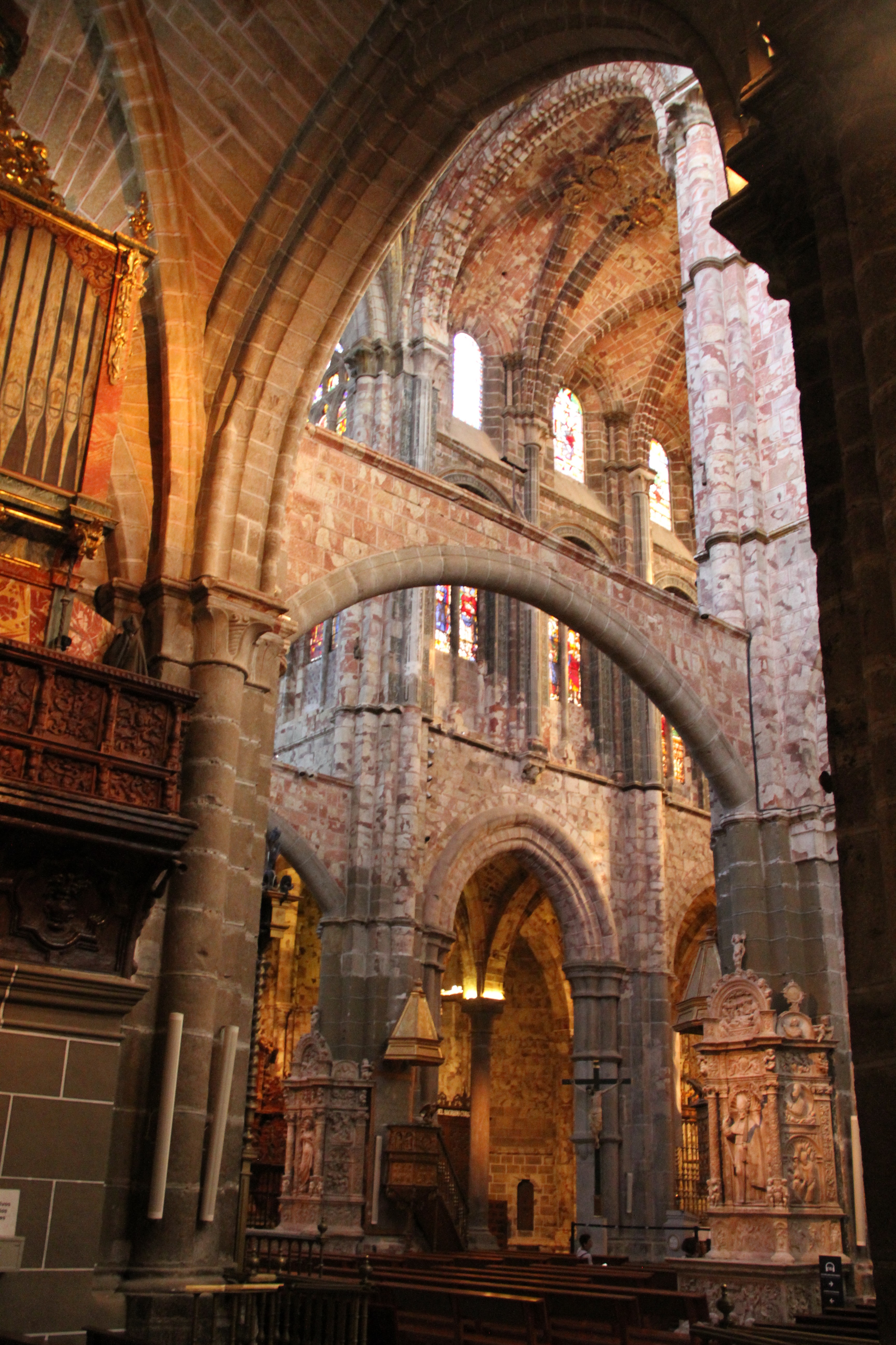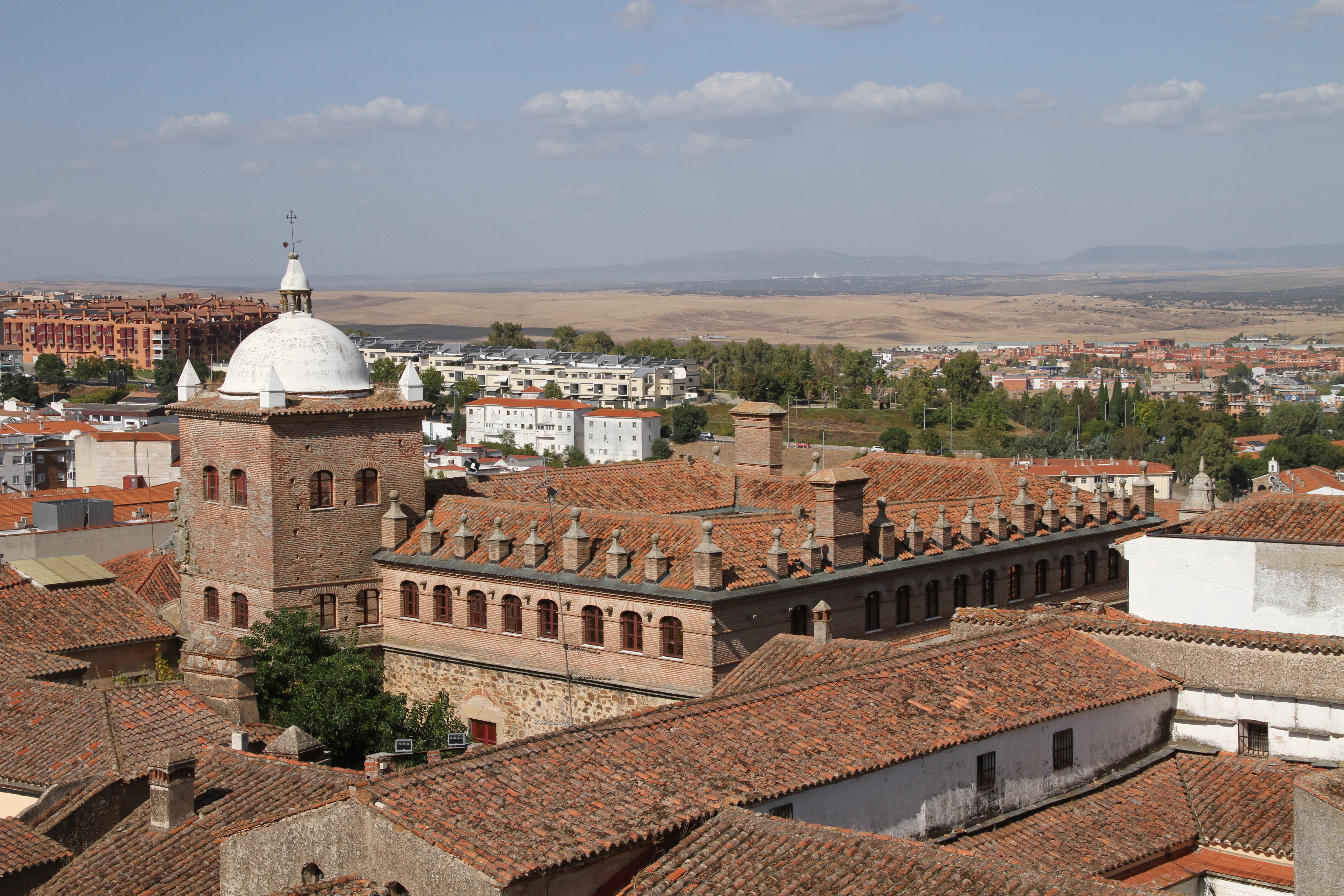 Cacerès est tout à fait à l’ouest de l’Espagne, presque contre la frontière portugaire. C’est la région de l’Estrémadure. Une région de quasi montagne. La végétation est rare. Dès que l’on sort des villes, on a l’impression d’un désert de rocailles. Cacerès a un centre historique intéressant, en particulier la co-cathédrale (parce qu’elle partageait l’évêché avec la ville de Coria, au nord de Cacerès).
