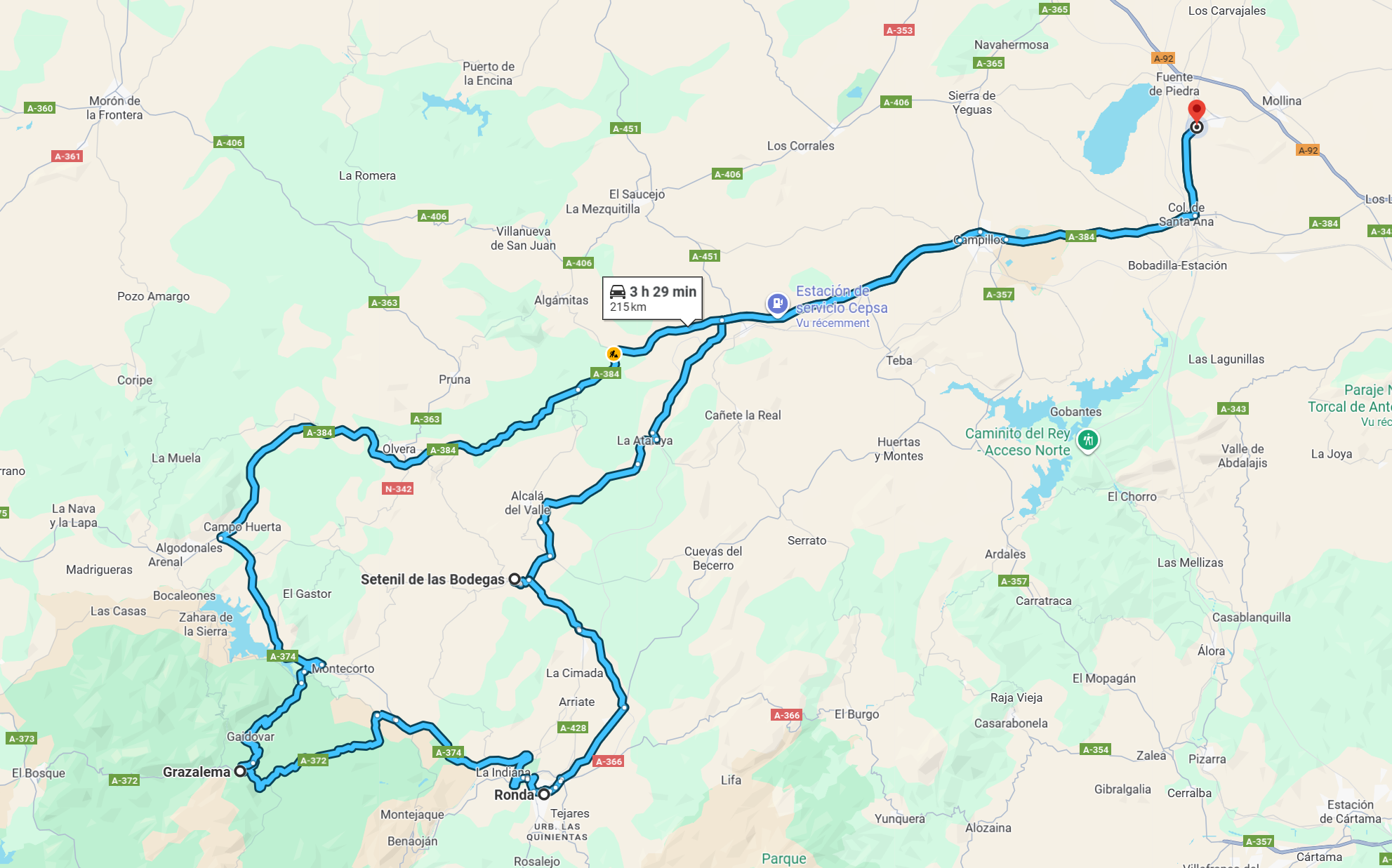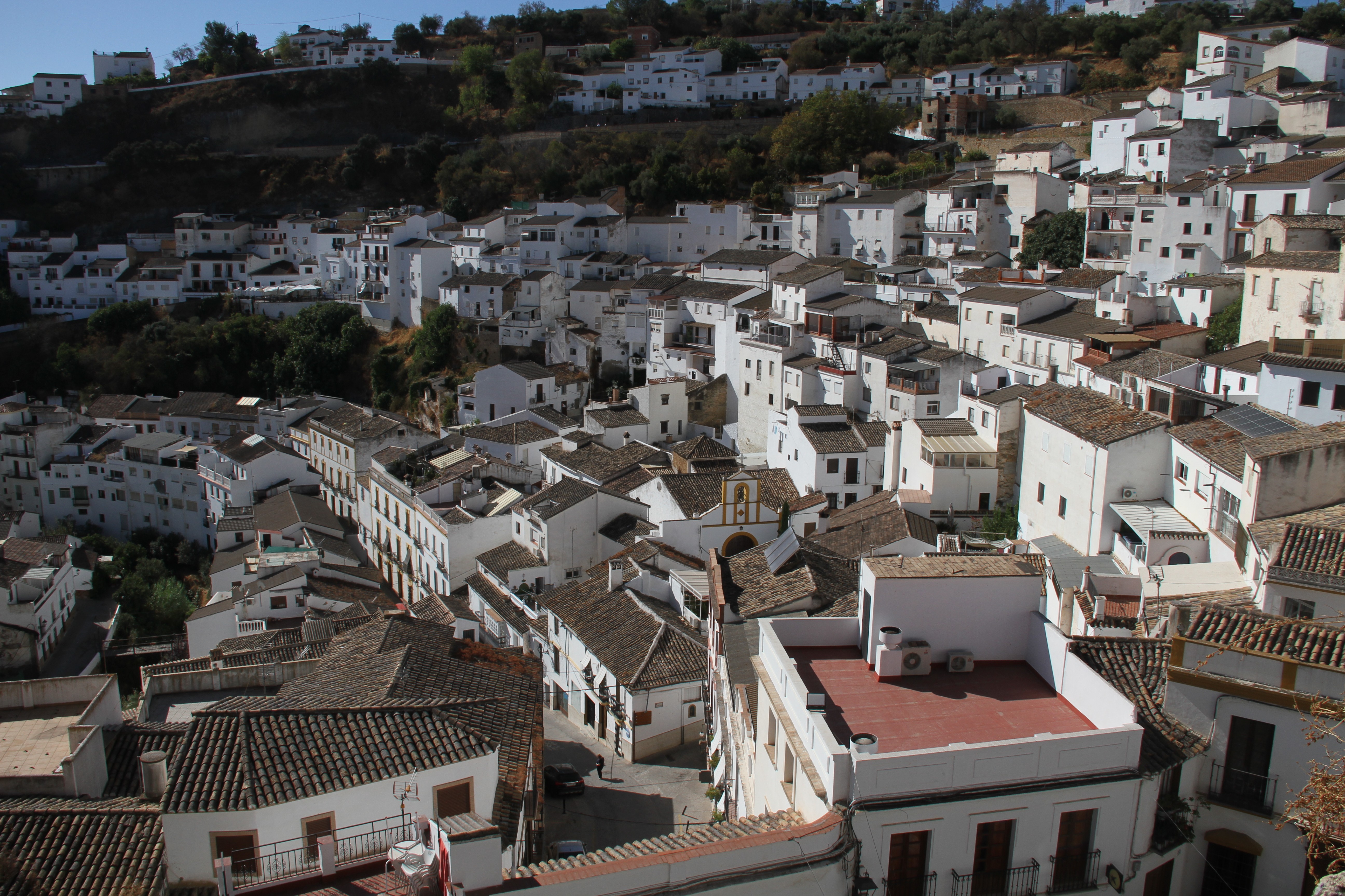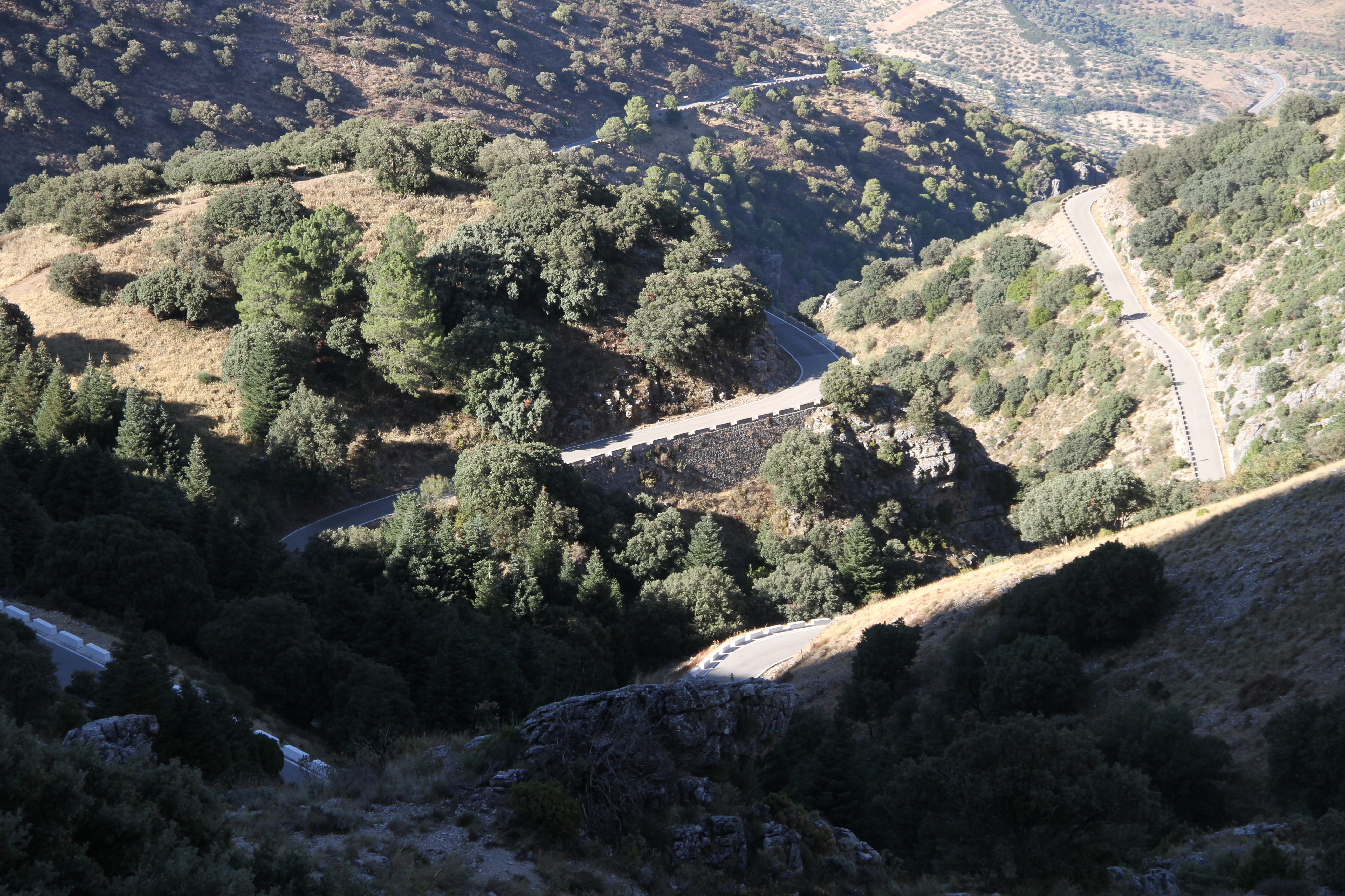 La tauromachie est importante dans ce sud. Et je continue la route vers Grazalema. Je ne pense pas avoir le temps de m’y arrêter, mais la route est si belle que je veux en profiter et ne passer que peu de km sur la même route. Après le village, c’est la montée et le col est à 1357 m. En passant, je m’arrête pour prendre quelques photos : Au-dessus de ma tête, il y a deux parapentes qui volent dans le ciel bleu.