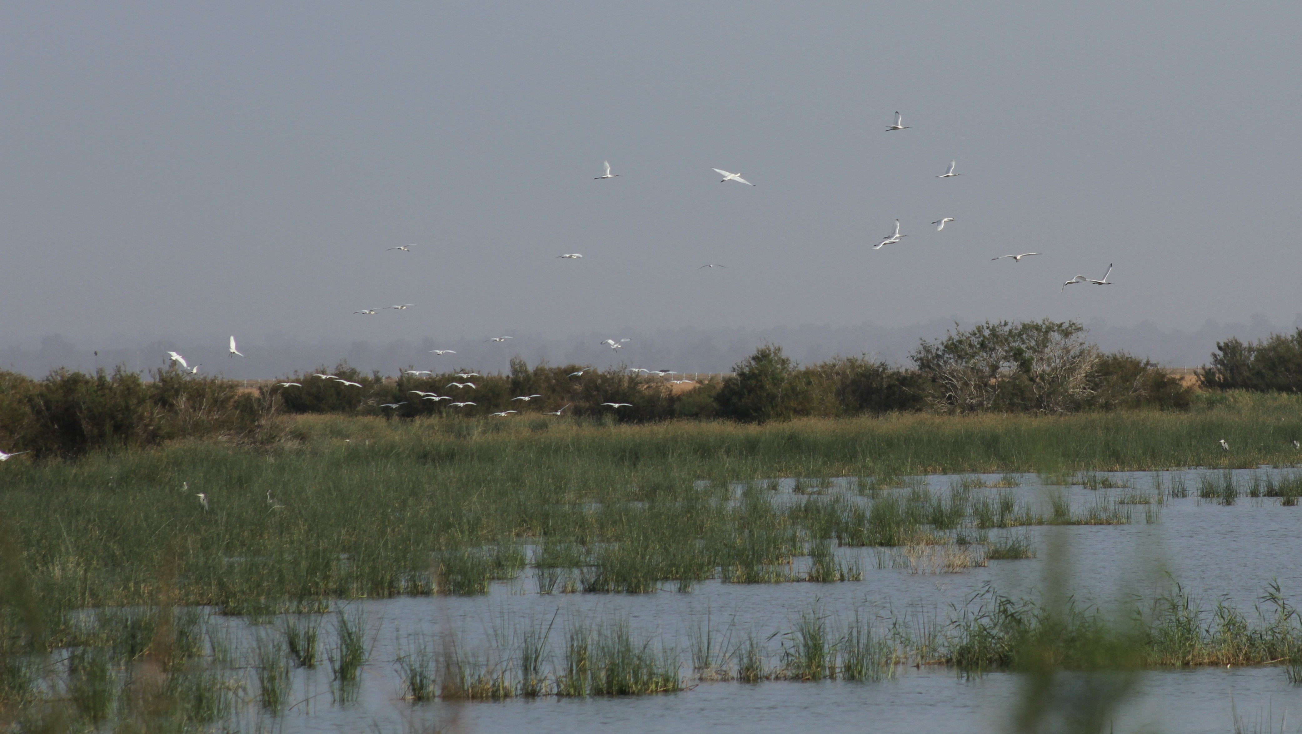 En rentrant, Google Maps m’a quelque peu égaré en pleine piste, qui se finissait même dans le sable. La mer devait venir, il y a quelques siècles, jusqu’à l’intérieur des terres et il reste le sable. Par contre, autour, j’ai pu voir de très grandes fermes qui faisaient de la culture intensive de fruitiers et de maraichers. Je comprends là comment l’eau devient si rare. Et la difficulté de cette région. Et la peur des personnes qui travaillent au parc.