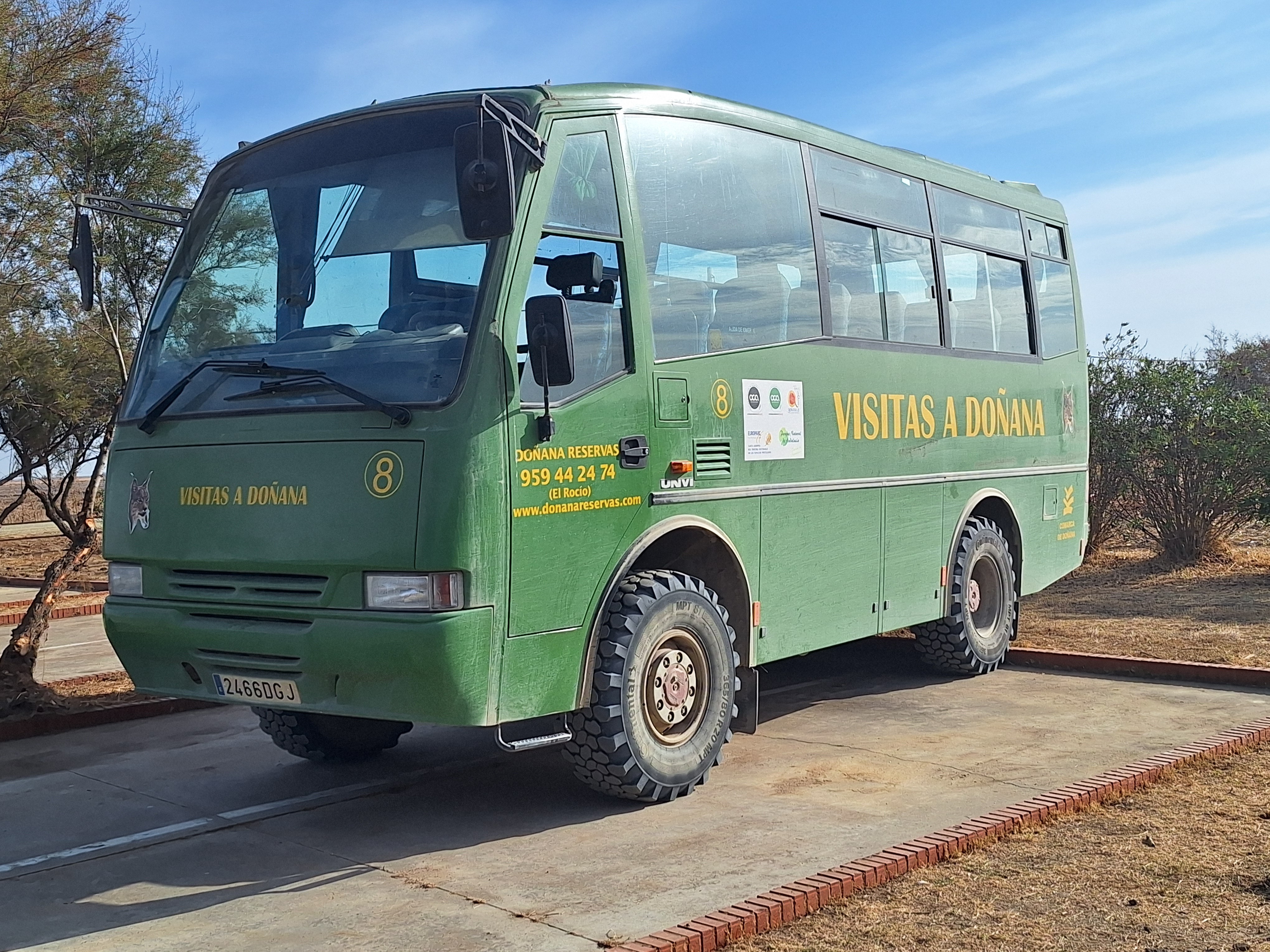 Lever ce matin hâtif. 5h30 le réveil sonne. Je dis les Laudes, j’enfile mes chaussures et me voilà prêt. A côté de l’hôtel « Lince » – le Linx, je trouve un bar et peux prendre un rapide petit déjeuner. Il fait nuit encore et il est à peine 7h00. Je prends la route vers « El Roncio » et « La Doñana – Parque national y natural ». C’est une route de campagne, pour les agriculteurs. Les gendarmes couchés sont trop rapprochés. Pauvre voiture, elle saute. Il fait encore nuit. Bref, il faut être très vigilant. Le jour n’est pas levé lorsque j’arrive à bon port. Un chauffeur m’est attribué : José Manuel. C’est lui qui nous guidera durant le périple de 3h30 que nous allons commencer à 8h00.