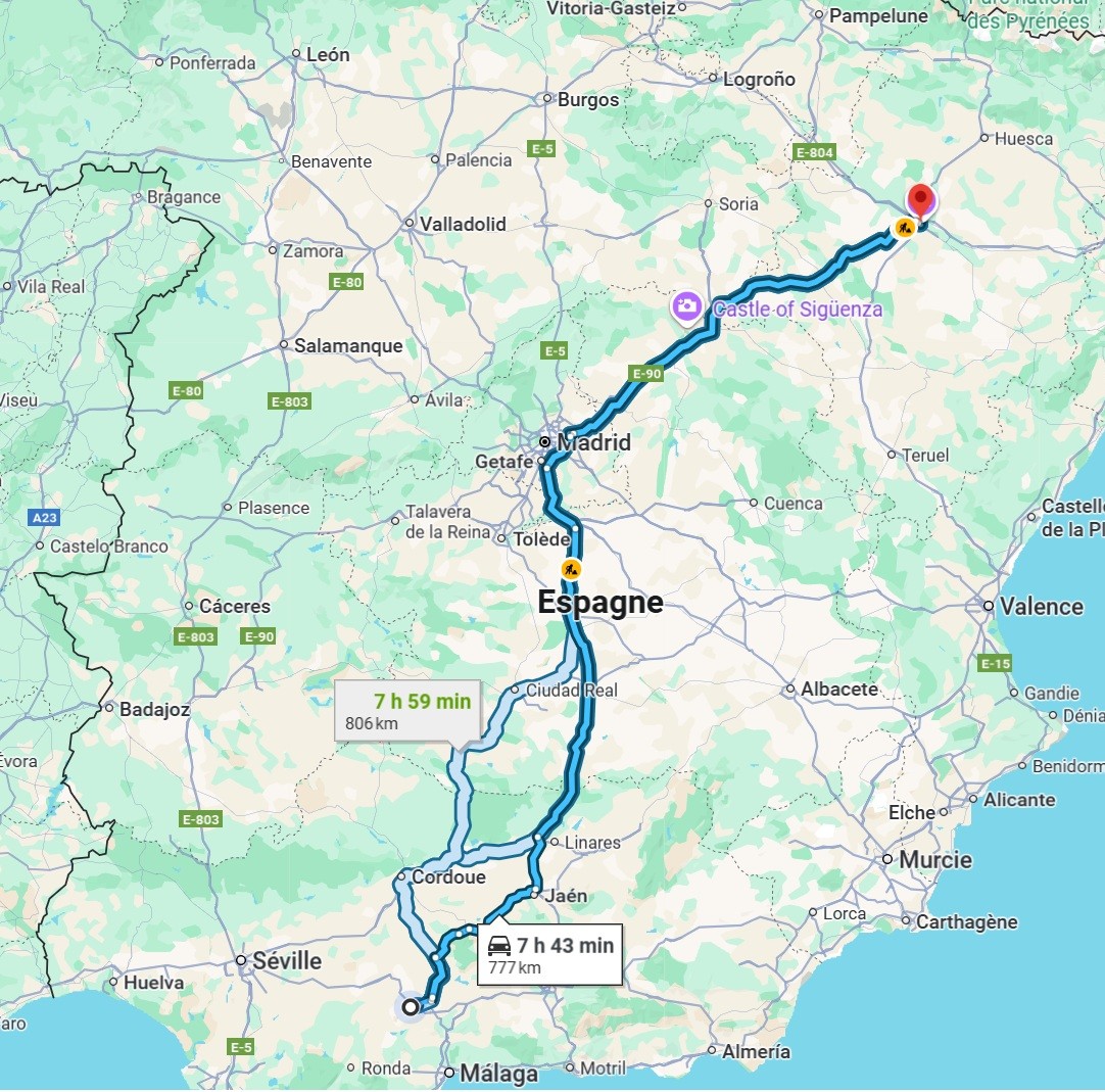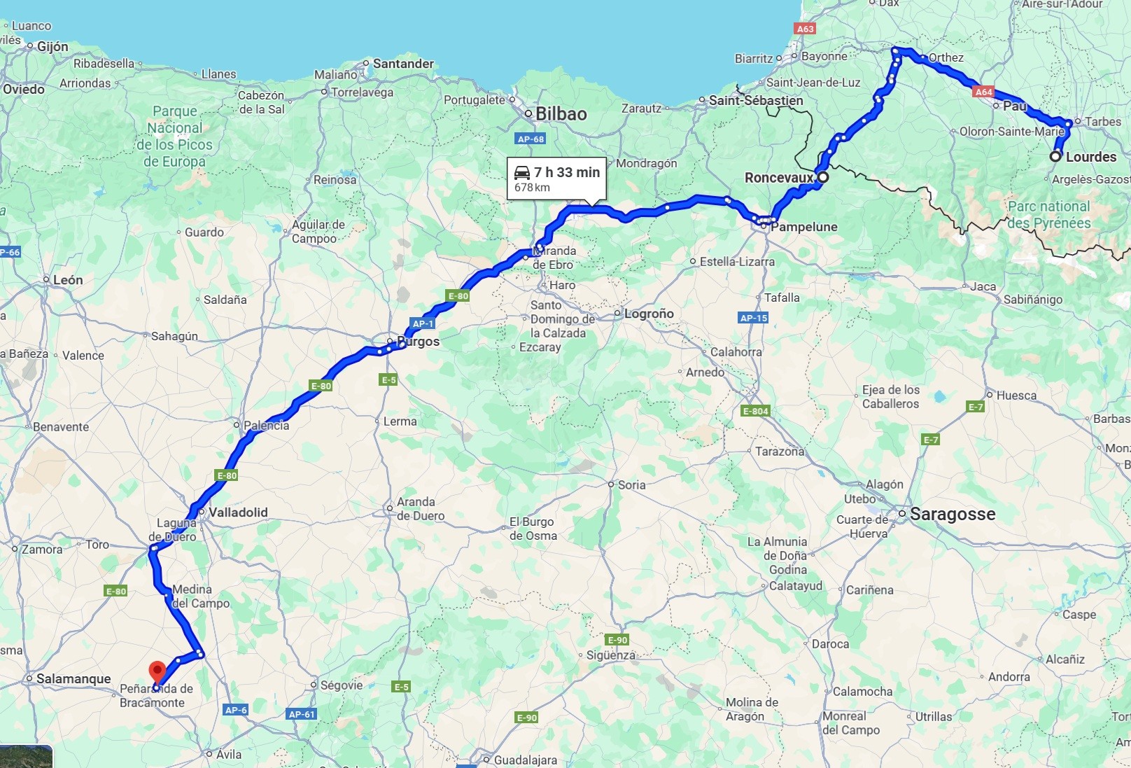 Le matin, à Lourdes, après la messe au sanctuaire et le petit déjeuner. Je suis fin prêt à partir pour huit heures de voiture. Tout au long du trajet, à partir de Pampelone, l’avis s’affiche tout au long de l’autoroute : Danger extrême d’incendie, soyez vigilents… Il n’a pas dû pleuvoir en Espagne depuis le printemps.