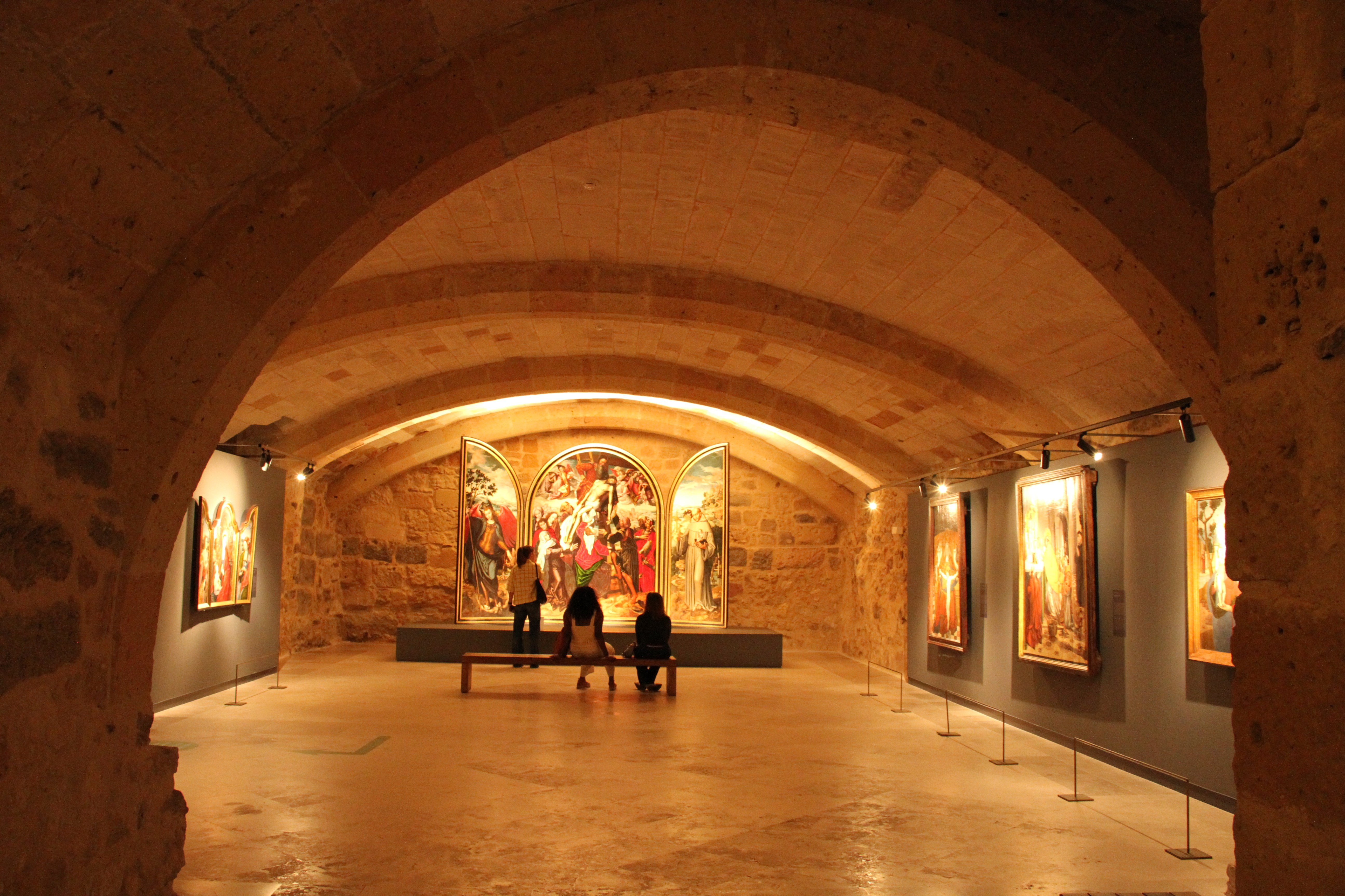 Pour la cathédrale, je voudrais vous montrer un triptyque et le décrypter avec vous. Voici d’abord la salle où il est exposé. Il en est le centre et c’est lui qui attire les regards :