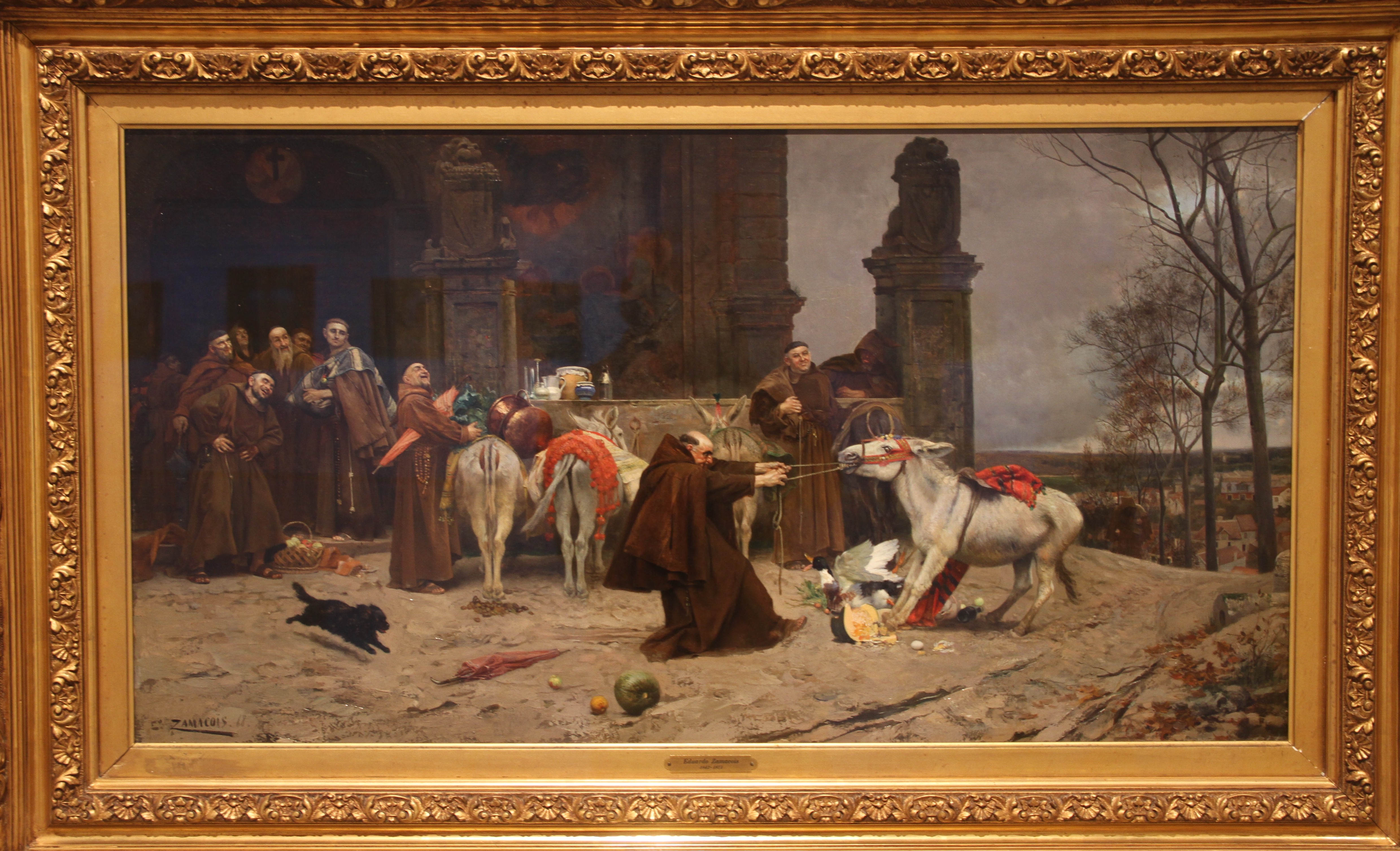 Deux scènes particulières. Un moine et un âne : quel est celui qui sera le plus têtu ? Et les autres rient de la scène. Les lavandières sont penchées sur leur travail. Peinture impressioniste qui est plus moderne que les trois autres qui sont de l’époque naturaliste. Bref, j’ai vraiment passé un très beau moment, même si le dernier étage qui est celui de la peinture abstraite, m’a beaucoup moins intéressé.