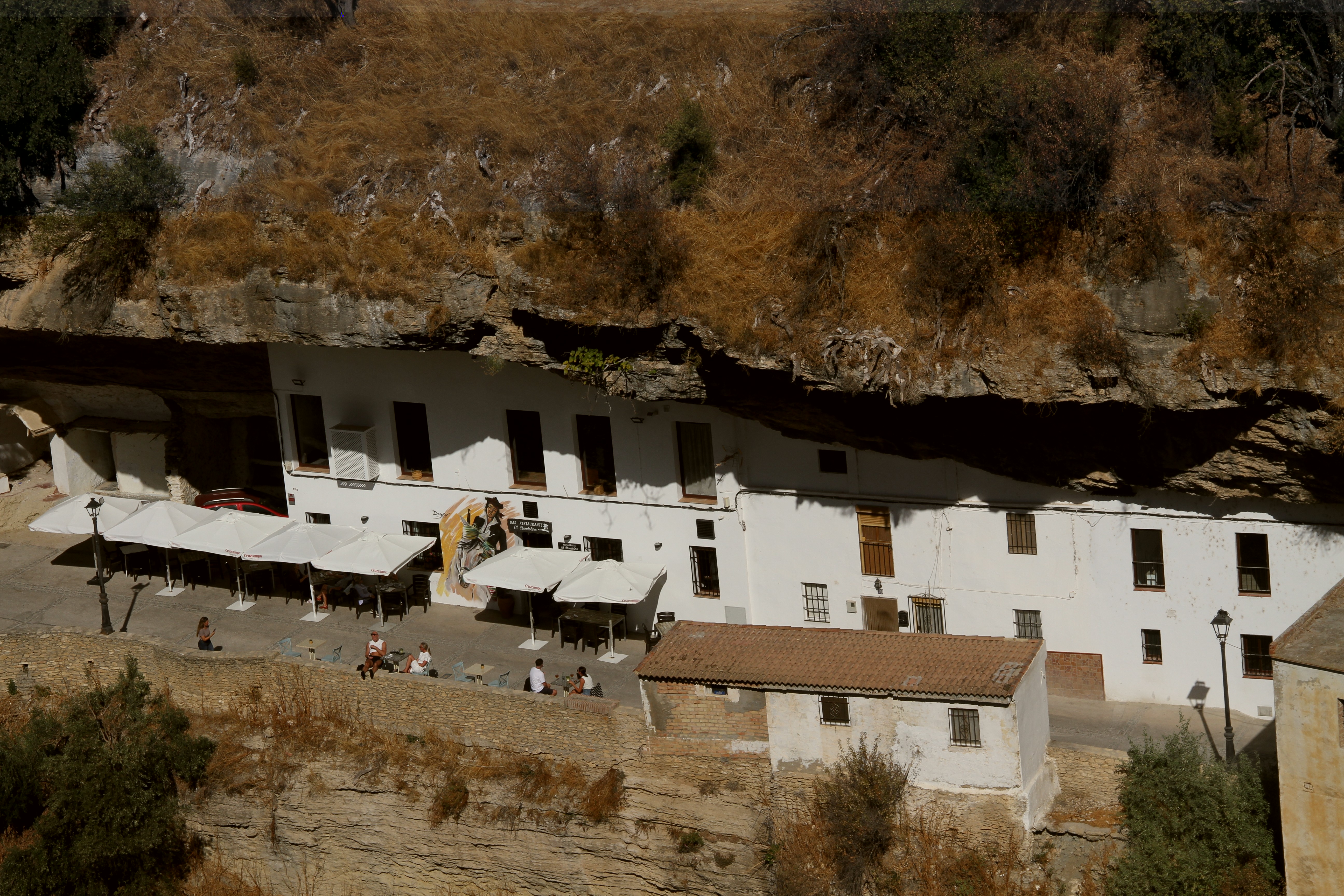 La route que j’ai suivie nous mène d’abord à Séténil de las Bodegas. Le village entoure une faille naturelle créée par le ruisseau qui ne coule que dans les pluies de printemps. Dans cette faille, il y a des maisons troglodytes. J’ai pu visiter une citerne d’eau. L’église du village a une représentation de la Vierge typique de cette région, qui n’est pas si loin de Séville.