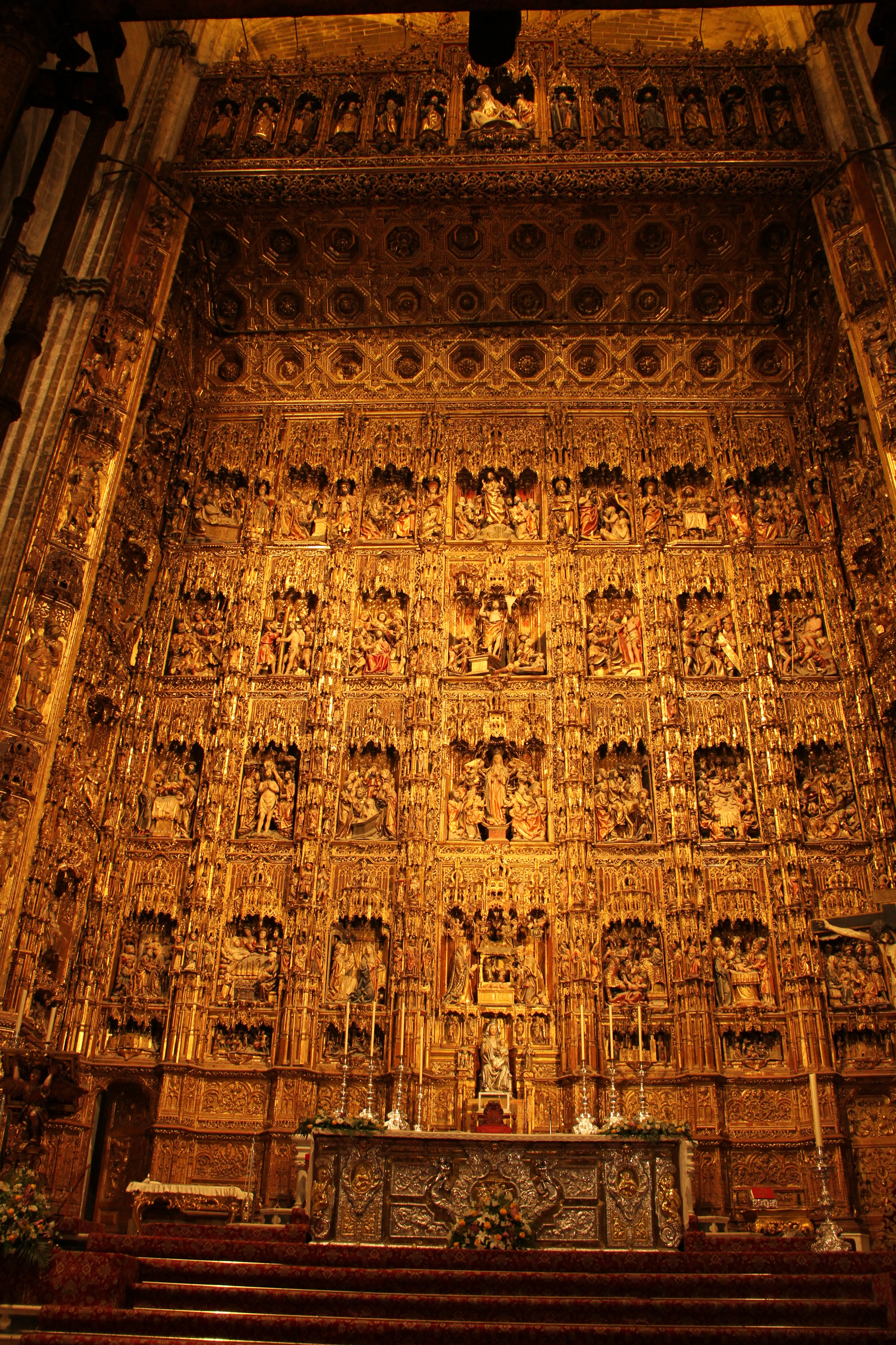 A l’intérieur, je n’ai pas eu trop de temps parce qu’il fallait que je sois à midi à l’entrée de l’Alcazar. Mais voici quand même le rétable du maître autel.