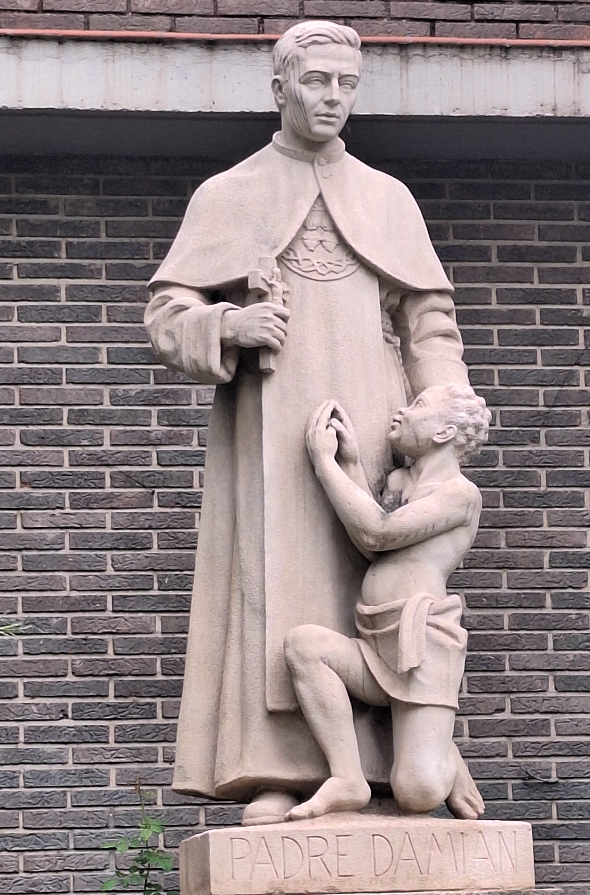 Les Pères des Sacrés-Coeurs de la Province ibérique sont sous la protection du saint Père Damien de Molokaï. Celui là même que le Père Bernard Couronne nous a permis de découvrir lors de notre représentation à Dangé-Saint-Romain, dans le diocèse de Poitiers. Les inter-tableaux décrivait la vie de ce saint Belge parti dans le Pacifique, partager la vie, et la mort des lépreux de l’archipel d’Hawaï dans l’île de Molokaï.