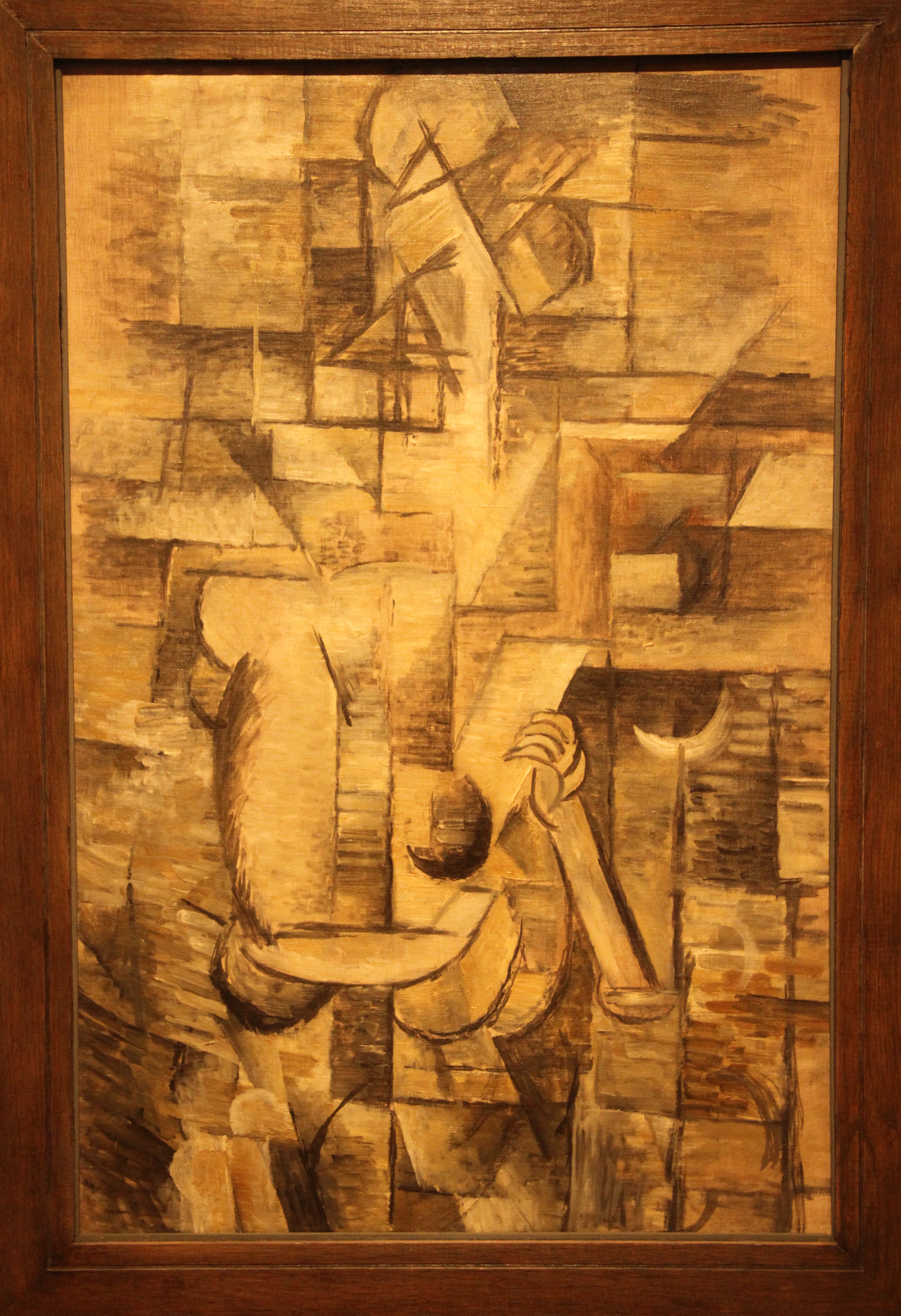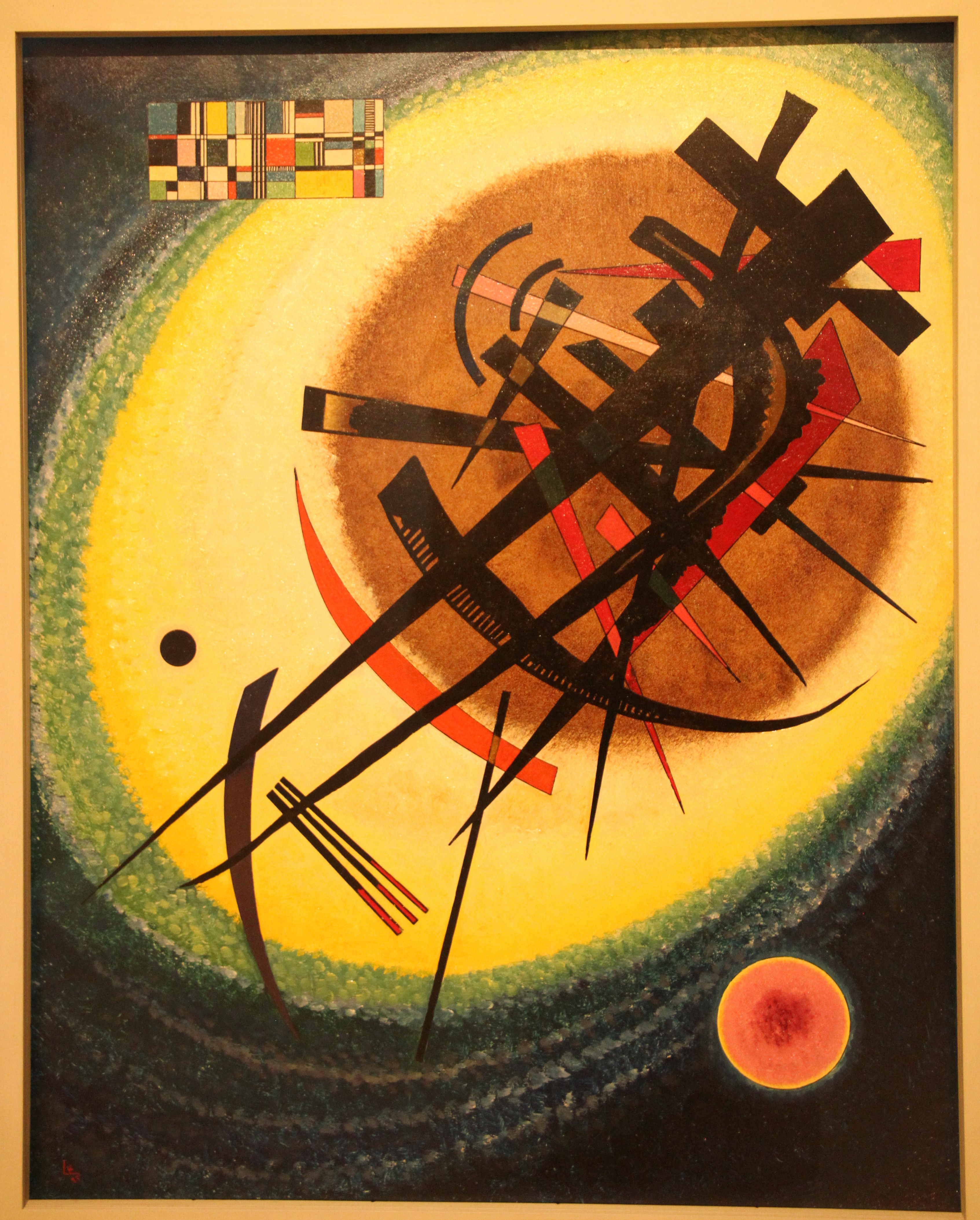 Wasily Kandinski « Dans l’ovale clair », peint en 1925. J’avoue avoir du mal à distinguer un sens à donner à cette image, que d’utre part, par l’harmonie de ses couleurs est belle. La suivante est de Georges Braque. Elle est 1910. Elle s’intitule « la femme avec une mandoline ». Les tons marron, une sorte d’éclatement du réel, tout semble fait pour qu’il n’y ait rien à comprendre. Ou est-ce le réel qui ne veut plus rien dire en art ? Qu’en est-il de la signification ? J’avoue que cette époque de l’art me fait beaucoup penser à toutes ces idéologies qui ont traversé cette époque. Je laisse cela à votre réflexion. Et je tiens à votre disposition un très beau livre que j’ai pu ramener du musée qui explique bien la recherche artistique en lien étroit avec la recherche philosophique.
