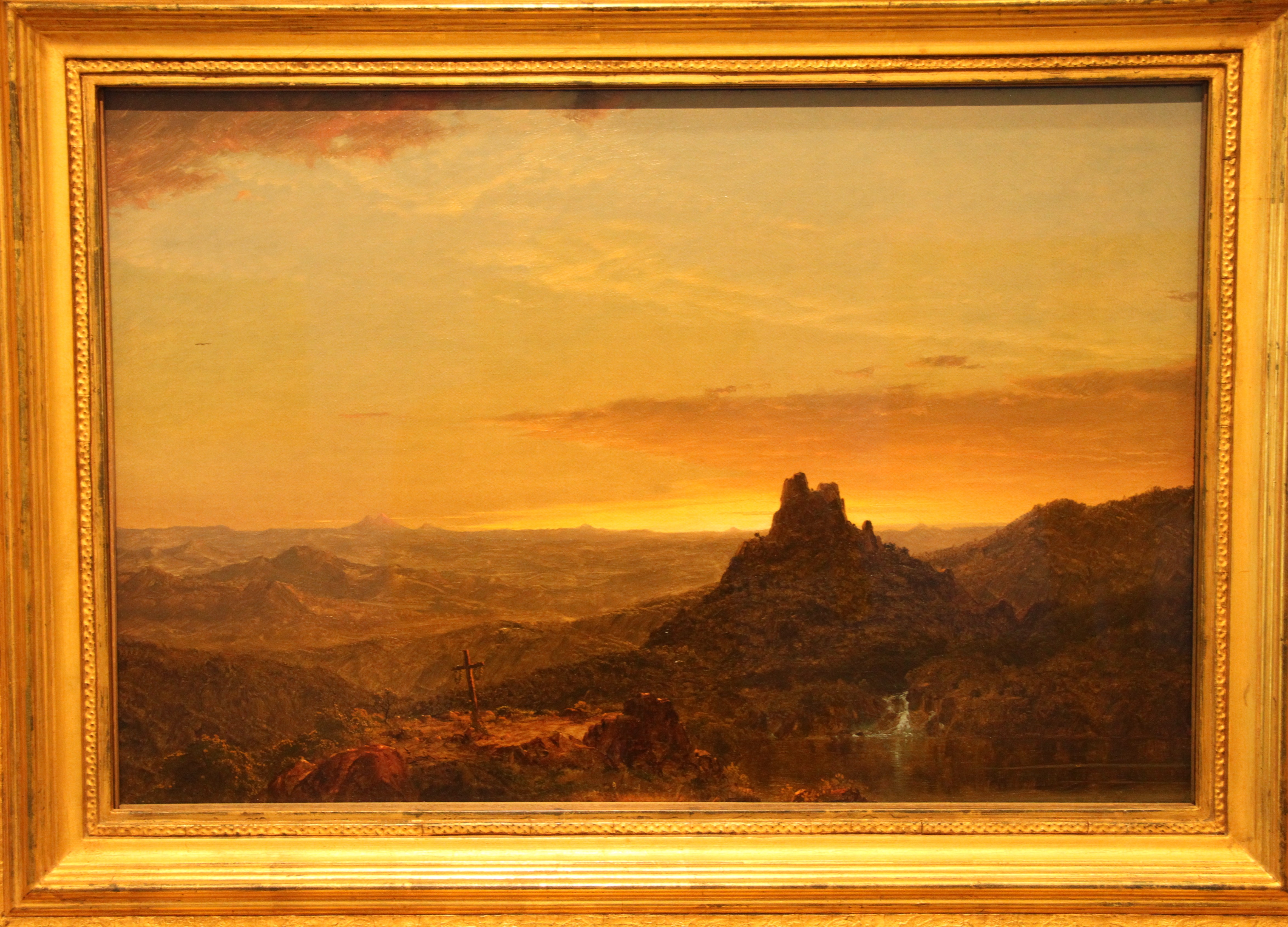 Et puis, le romantisme, après l’ère classique que je n’ai pas retenue. Peint en 1857, par un peintre qui vient du Nouveau-monde : Frederic Edwin church. La beauté matérielle de ce coucher de soleil dans une nature sauvage, quelque part dans les Rocheuses, laisse peu de place à la croix.