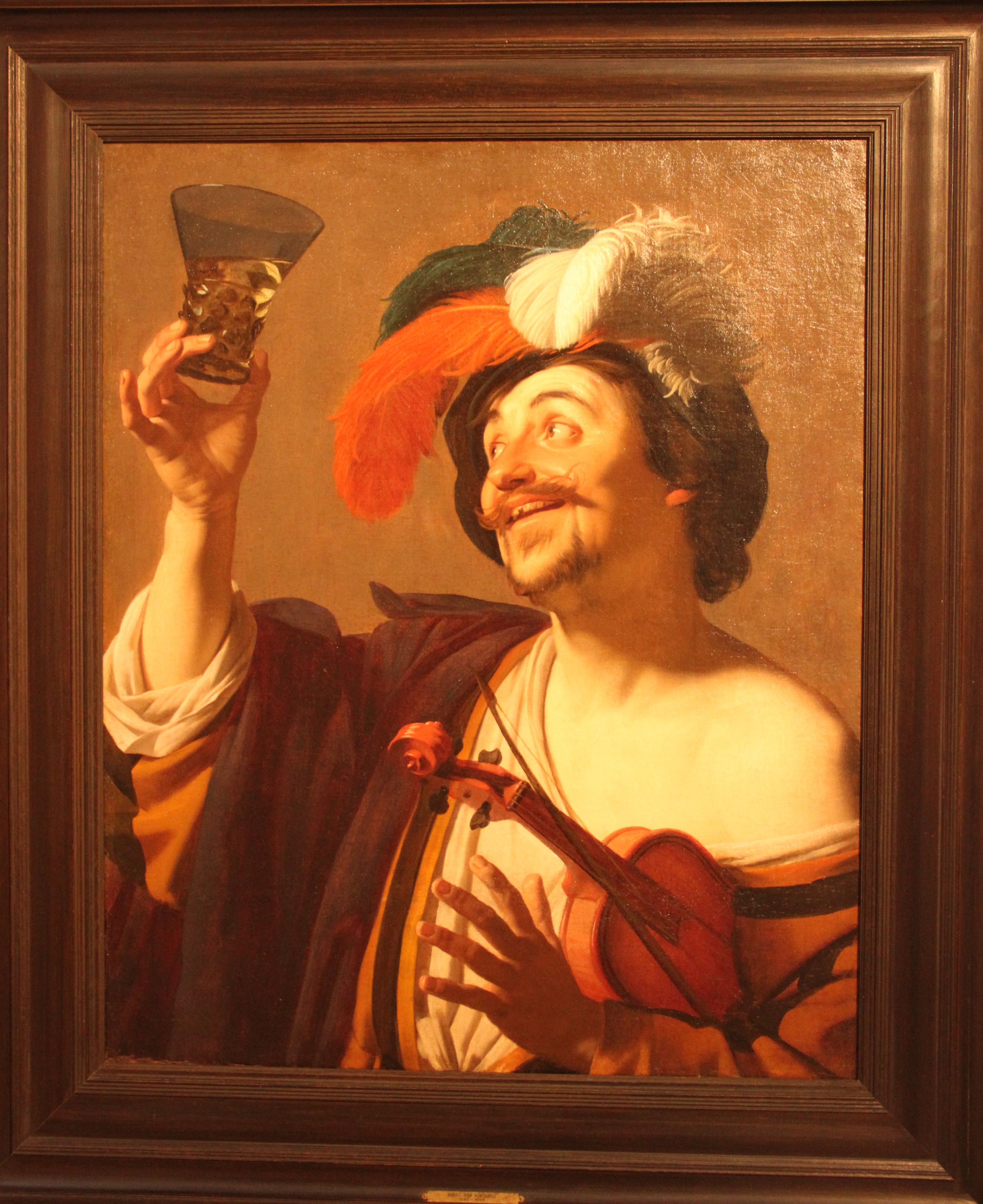 Une image qui n’est pas religieuse, mais que j’ai beaucoup aimée parce que l’air réjoui de ce joueur de mandoline qui regarde son verre de vin fait plaisir à voir. Gerrit van Honthorst, d’Utrecht, aux Pays Bas, peinte vers 1624. Les Pays-bas ont bien compris le modèle italien, tout en restant eux-mêmes.