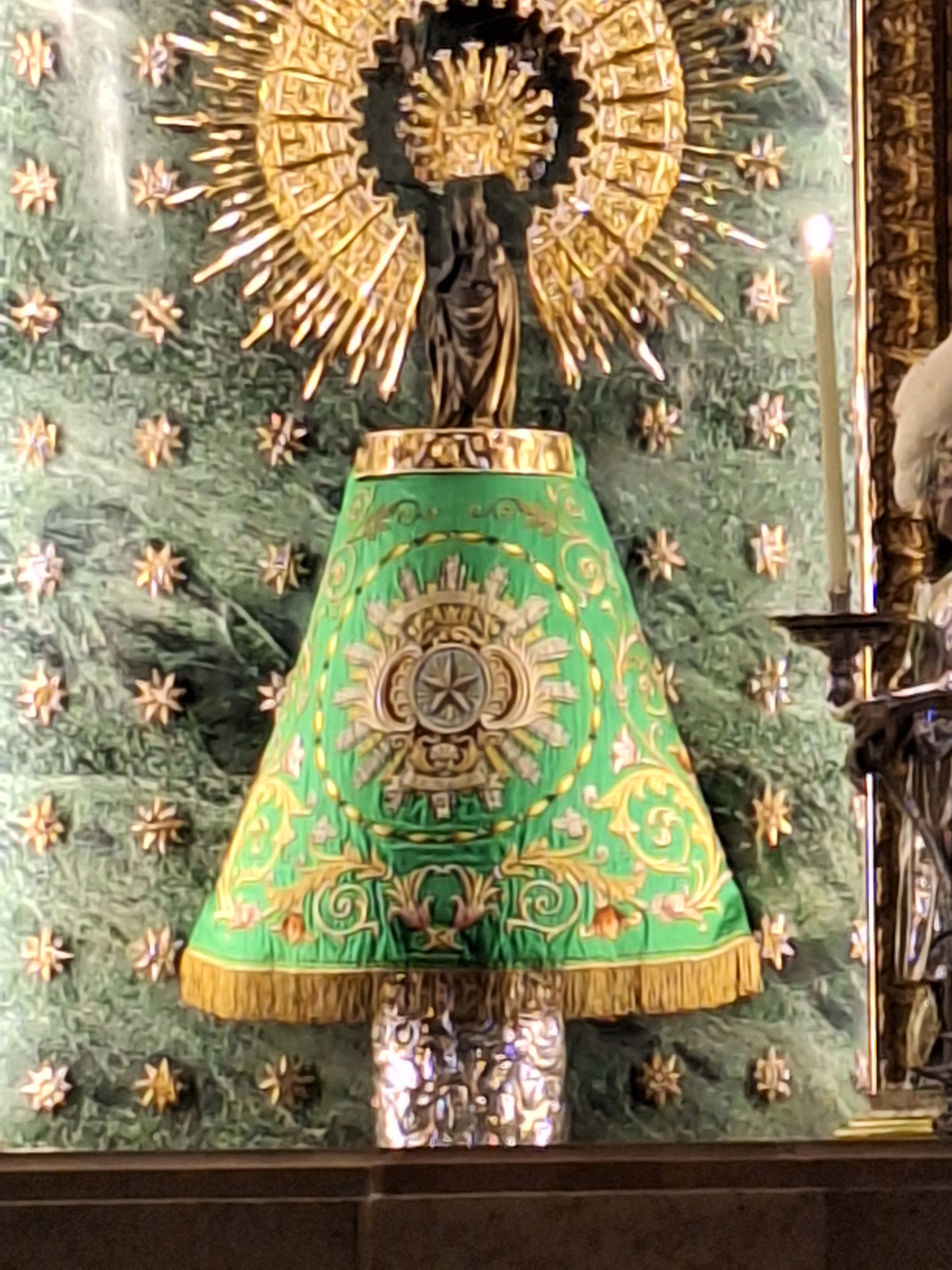 Voici donc la basilique et la Vierge sur son pilier. Elle est toute petite… Et puis, le rétable au-dessus du maître autel :