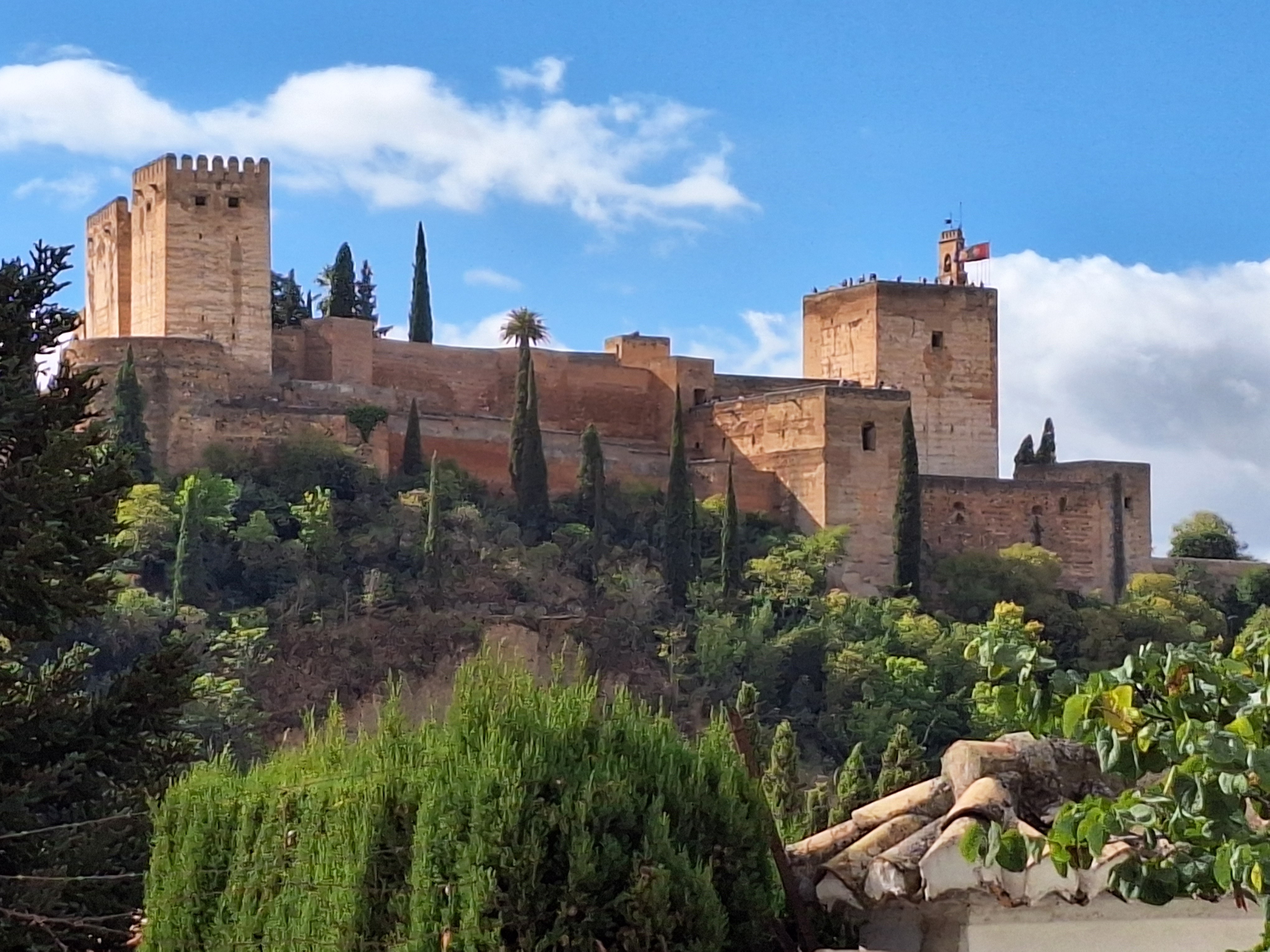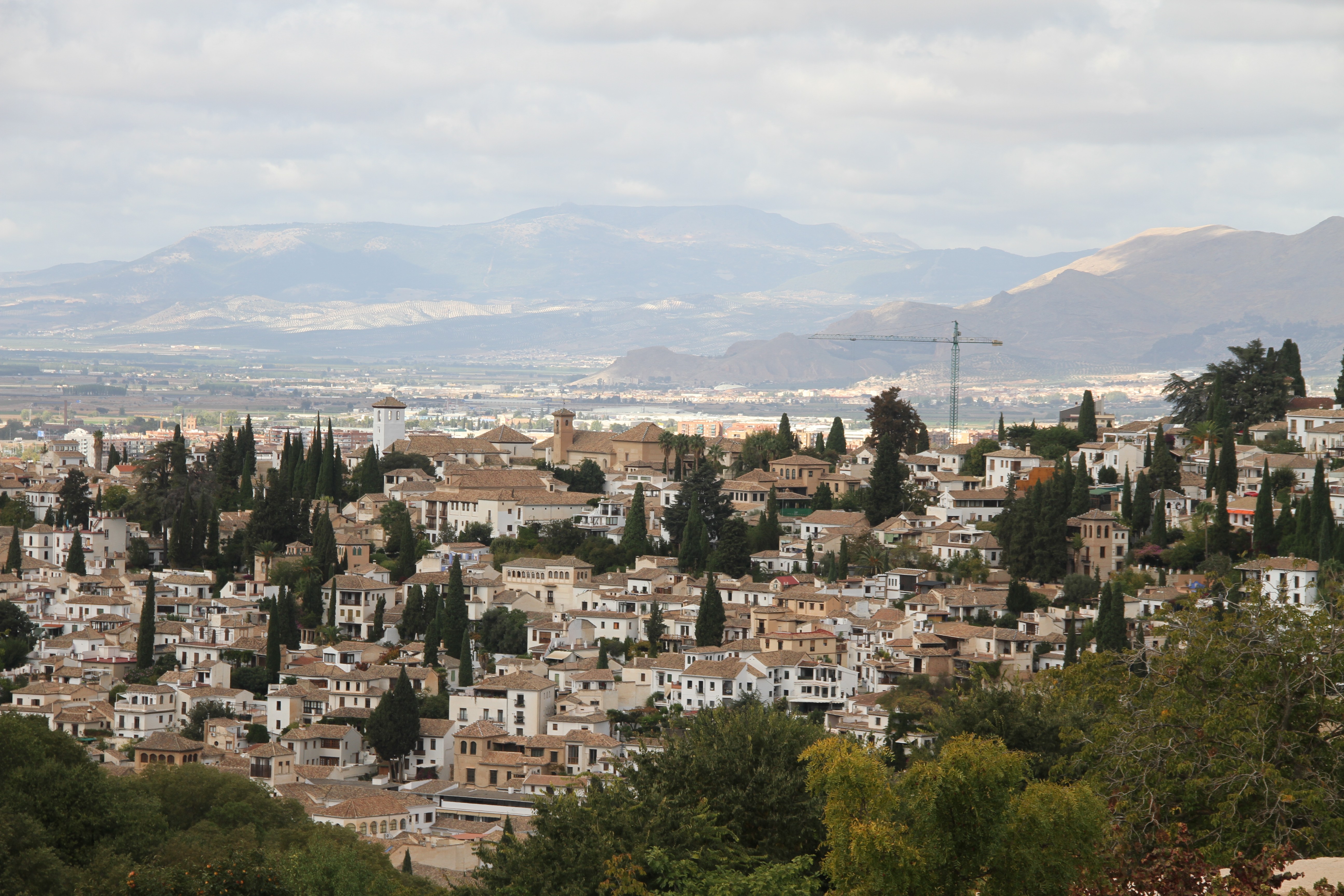 Je prends à nouveau le train. Un peu plus tard qu’hier, ce qui m’oblige à dire la messe le matin, seul dans ma chambre. C’est une expérience que je ne vis que très rarement. Arrivée donc à Grenade vers 10h30. En passant, je m’arrête à la cathédrale. Puis, je prends un bus vers l’Albaicin, un quartier qui fait face à l’Alcazar. Voici une photo où nous voyons, depuis l’Albaicin les palais Nasrides et le palais de Charles Quint. Sur la seconde photo, magnifique vue sur la ville de Grenade et la Sierra Nevada (la montagne enneigée).