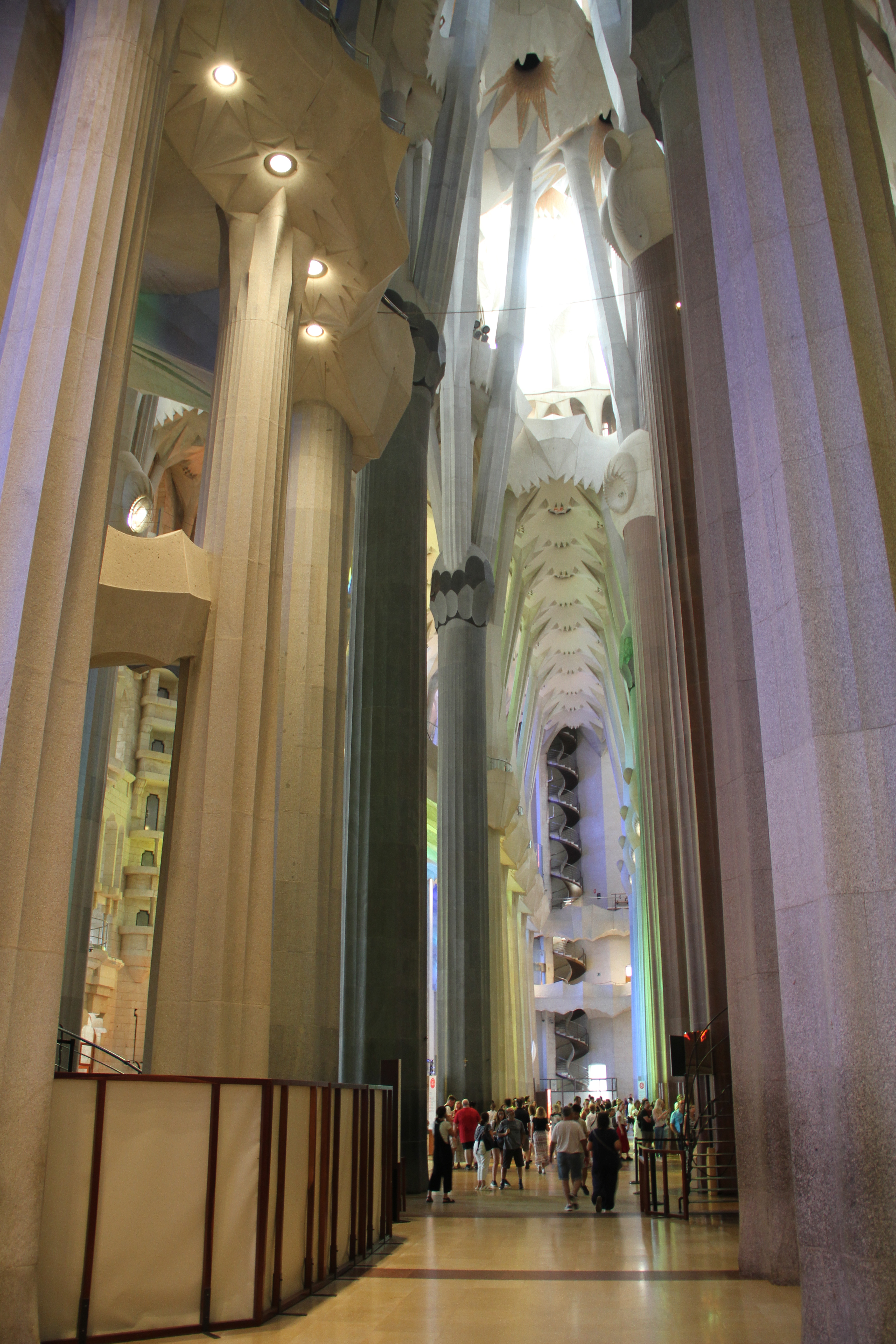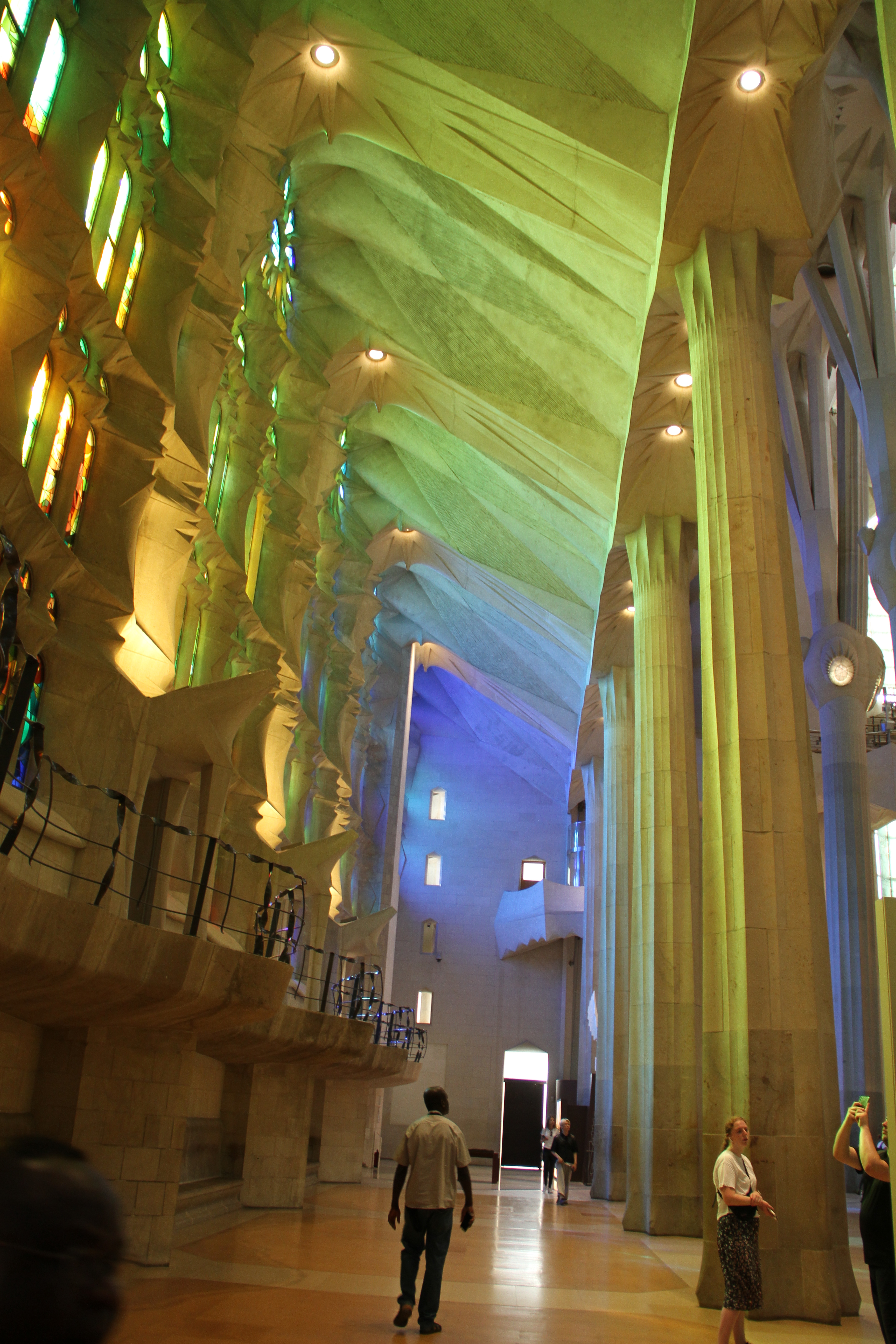 L’intérieur est encore plus fascinant: la luminosité, les couleurs, les volumes, les perspectives tout est déroutant, tout est fascinant. Et il semble manquer si peu de choses à la finition. Je pensais trouver beaucoup plus de manques ou d’absences ou de lieux de travail. Ces quelques photos qui suivent sont si peu de choses. Quand vous en aurez l’occasion, partez vite à Barcelone pour être, à votre tour émerveillé.