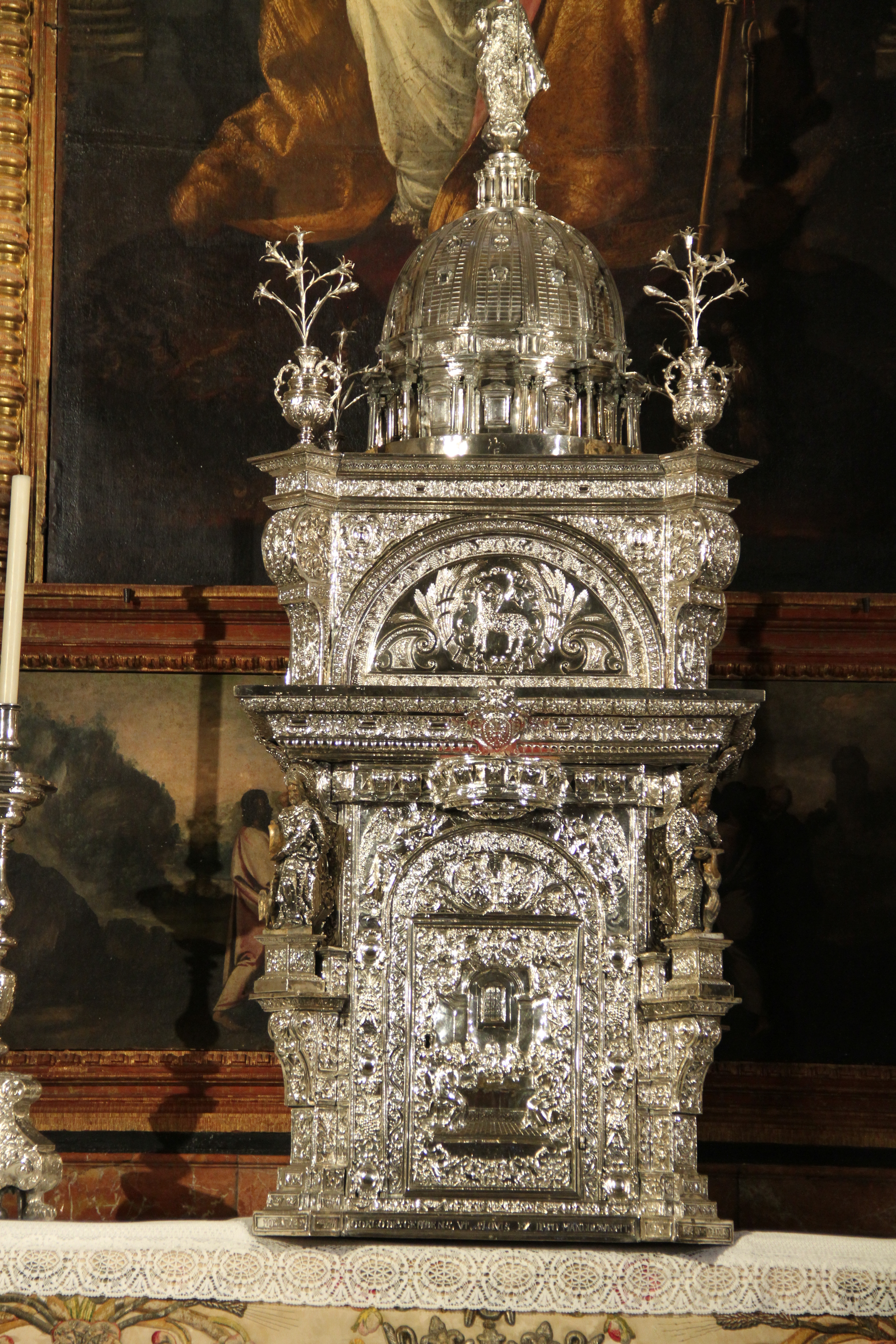 Mais c’est dans la cathédrale que nous faisons les plus belles découvertes: le trésor, le plus beau rétable que je n’ai jamais vu, et le catafalque de Christophe Colomb.