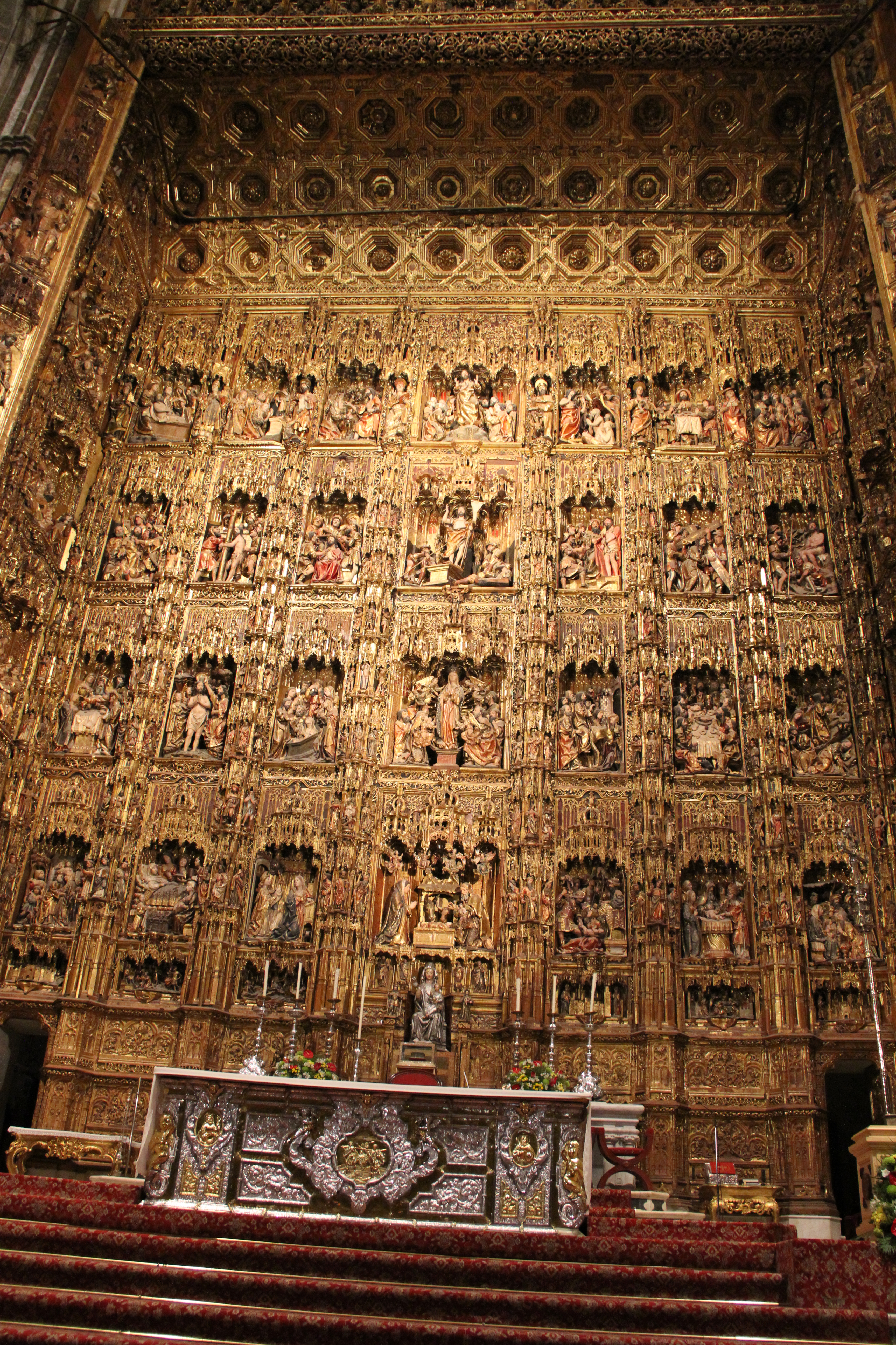 Enfin le rétable qui a fait notre émerveillement. Il a été construit par pans entiers et il était une catéchèse pour les Sévillans de la Renaissance.