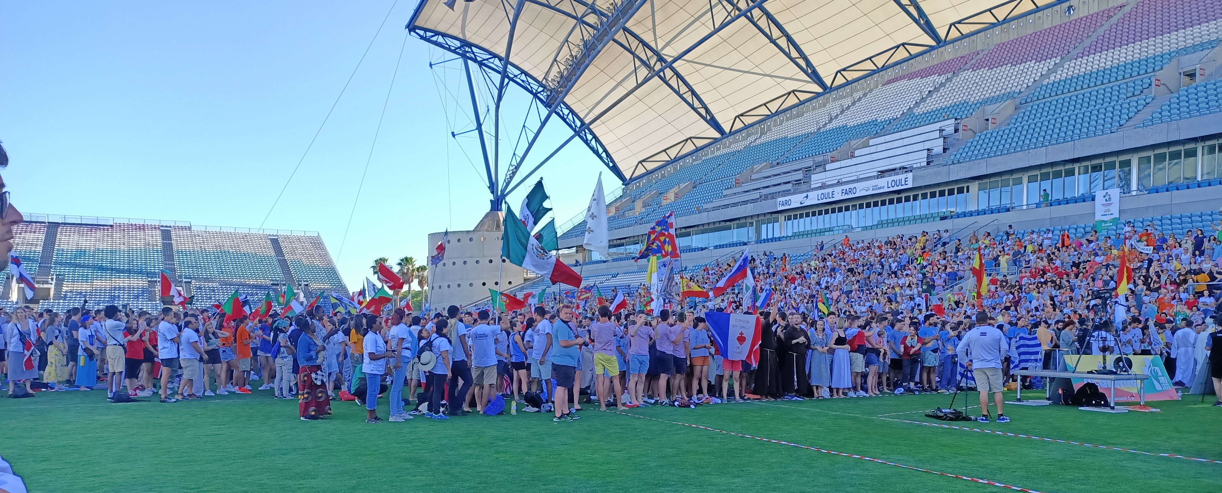 Une très belle messe a eu lieu dans le magnifique stade de l’Algarve à Faro. C’était la messe de clôture des journées en diocèse. quelque 10 000 personnes étaient présentes sur la pelouse et dans les tribunes protégées du soleil. Un moment de communion très fort a été ressenti par tous les participants, qu’ils soient Portugais ou d’un autre pays.