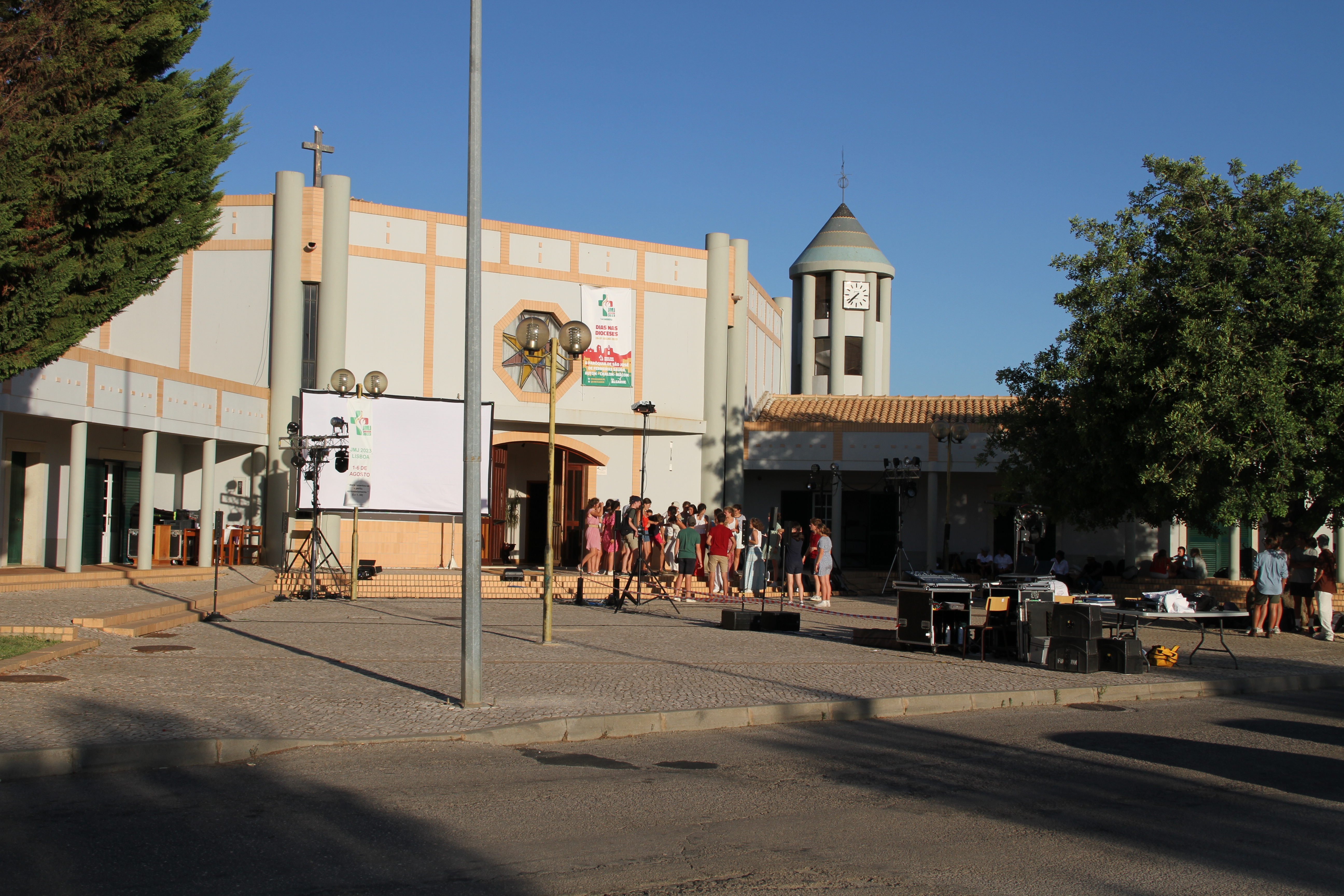 10 Baladins et 350 jeunes du diocèse d’Autun. Nous nous retrouvons ensemble à l’église de Ferreiras, quartier populaire de la ville d’Albufeira, plein sud du Portugal. La chaleur est omniprésente mais il y a un vent qui vient quelque peu adoucir les ardeurs du soleil. L’accueil des paroissiens est fabuleux. Nous étions attendus et tout était fin prêt aussi bien pour l’accueil que pour la nourriture. Une maison d’accueil avec tout le confort est allouée aux Baladins, à tout juste dix minutes de l’église où nous devons donner la représentation des « Ambassadeurs du Coeur de Jésus ». Tel est le nom qu’a pris le groupe qui donnera donc quatre représentations durant ces JMJ: une à Ferreiras et trois dans l’église St Jorge de Arroios à Lisbonne.