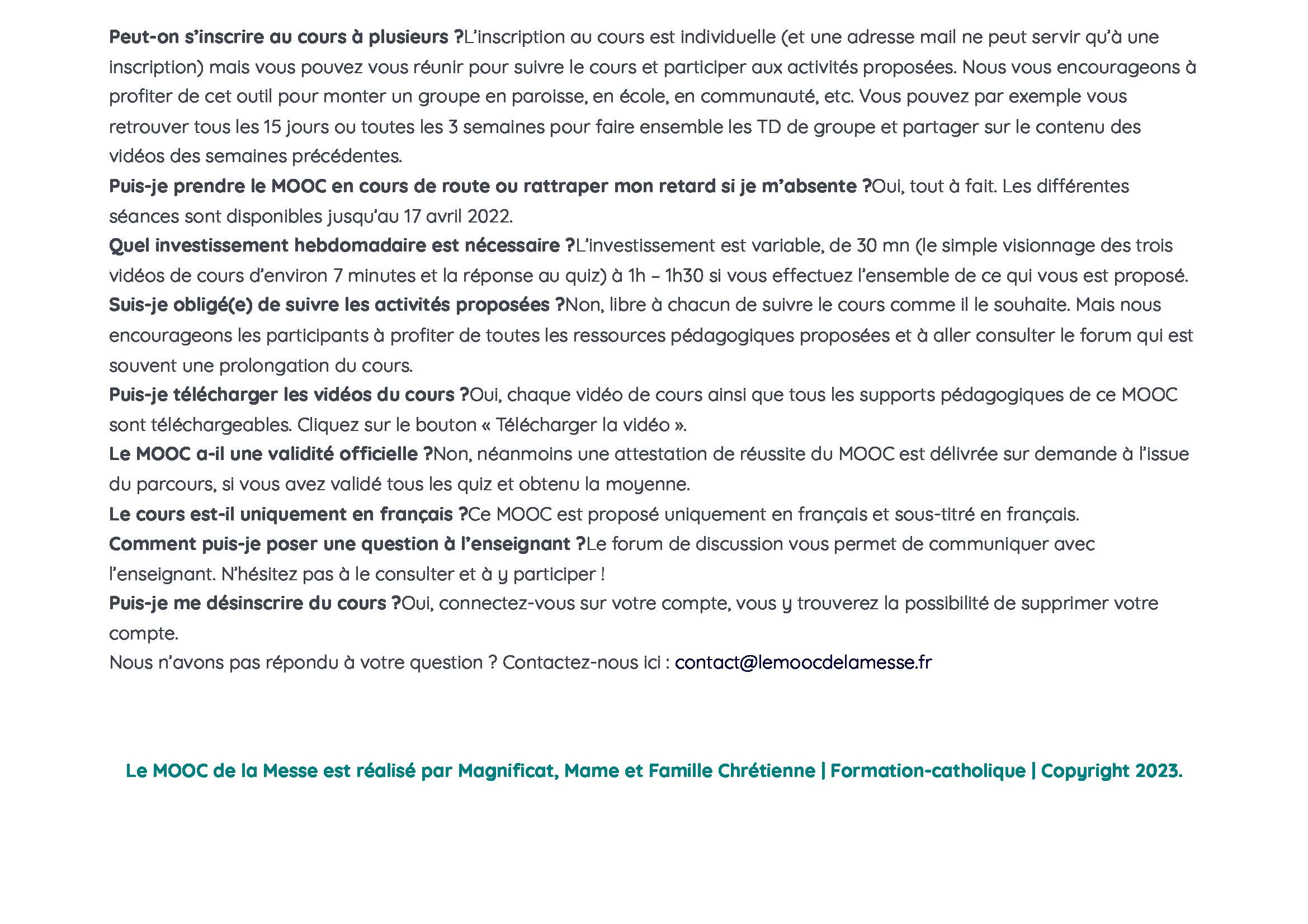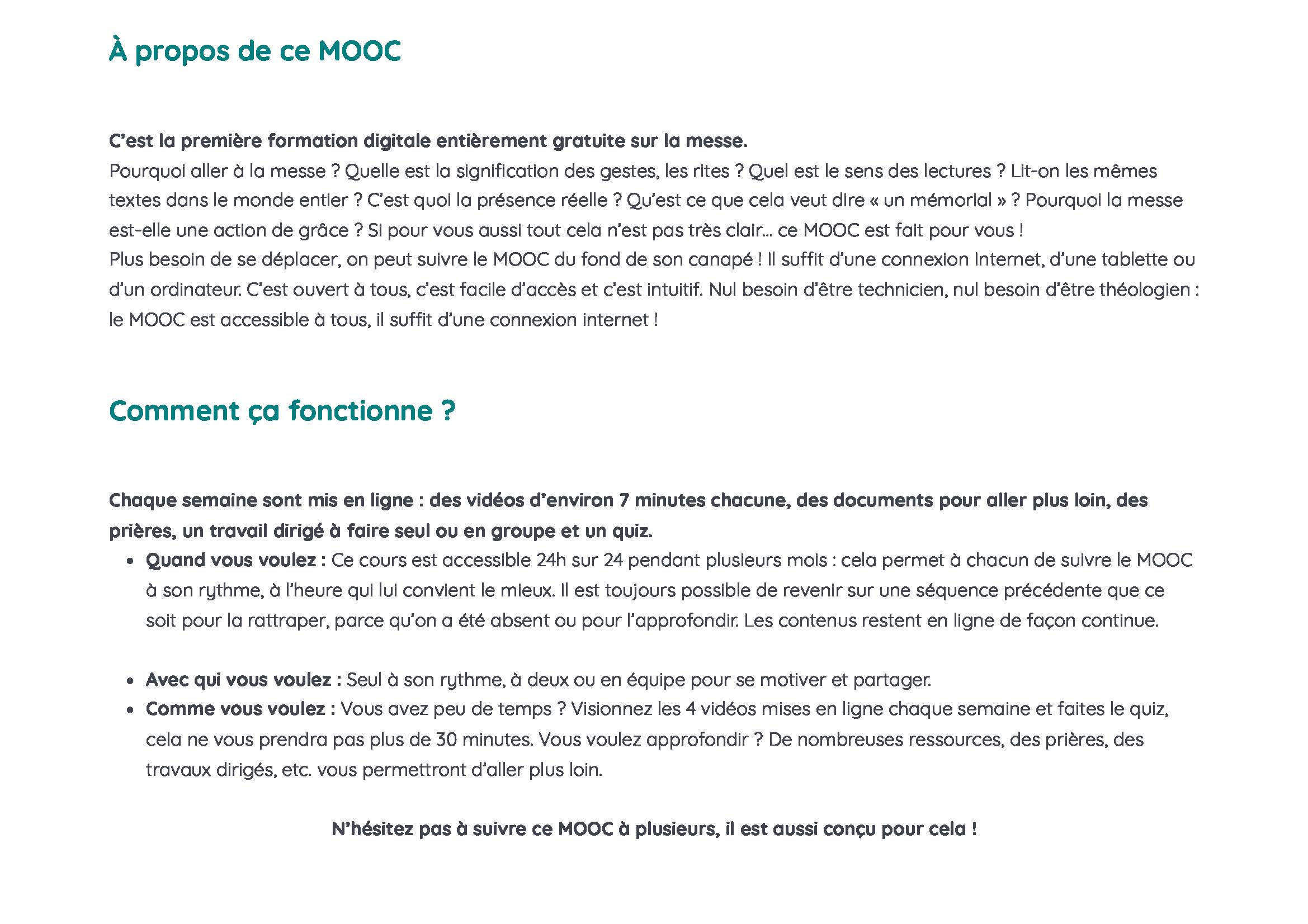 Puis, cliquez sur l’image ci-dessous et lisez le texte qui suit. Vous en saurez autant que moi sur le MOOC de la messe. Et nous pourrons le découvrir ensemble à partir du 21 septembre durant les six mois qui viennent. Et n’oubliez pas de venir avec des feuilles et un stilo.
